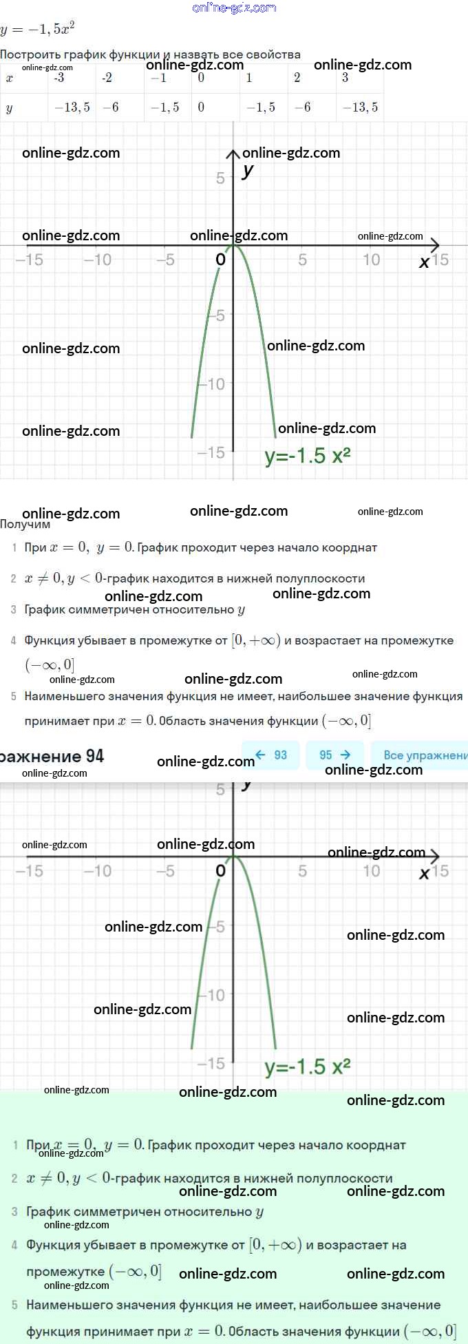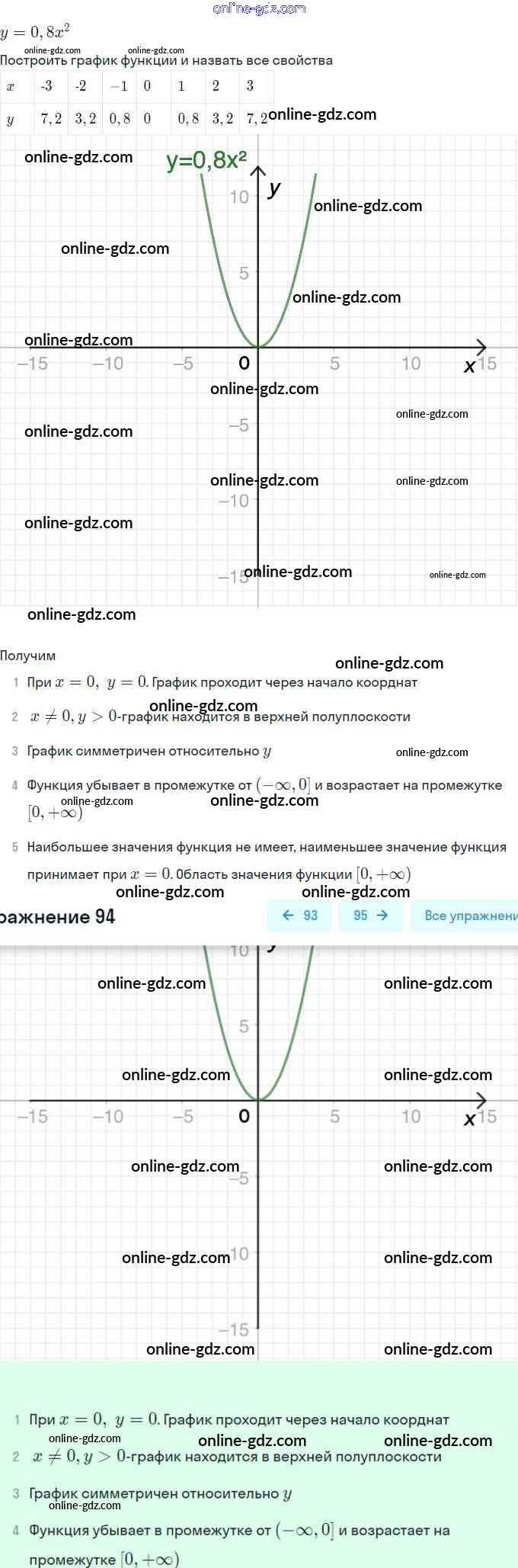Готовые домашние задания по Алгебре за 9 класс Учебник Макарычев, Миндюк 2014 - Глава 1. Квадратичная функция (упражнения) 94