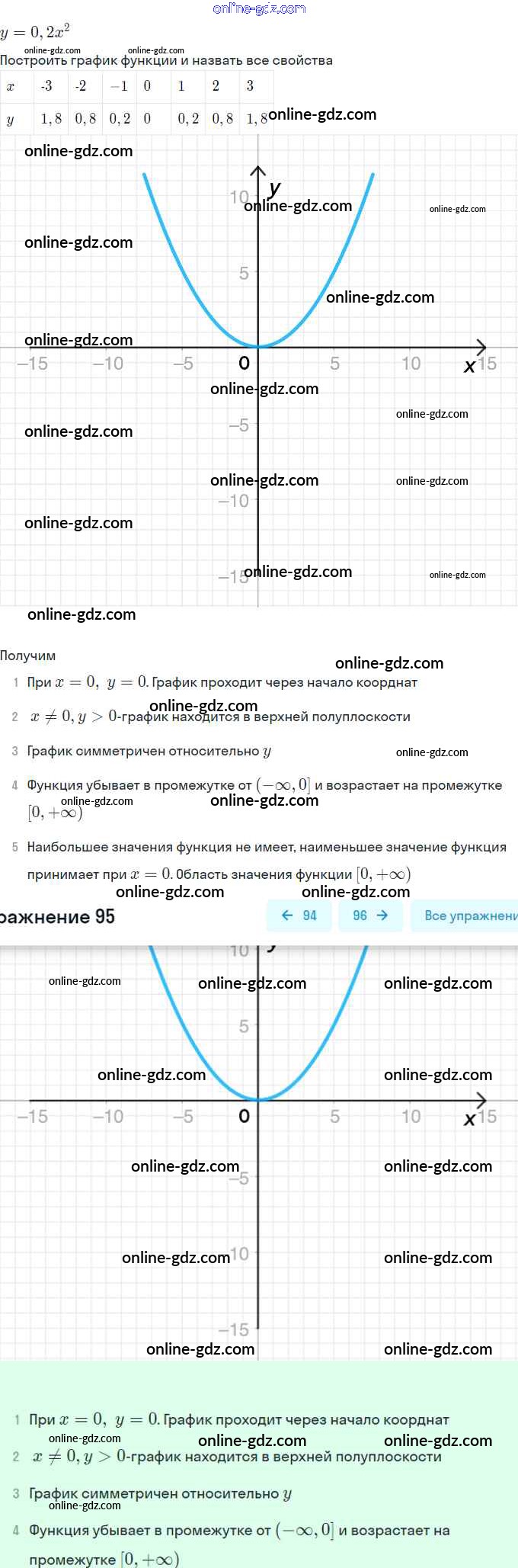 Готовые домашние задания по Алгебре за 9 класс Учебник Макарычев, Миндюк 2014 - Глава 1. Квадратичная функция (упражнения) 95