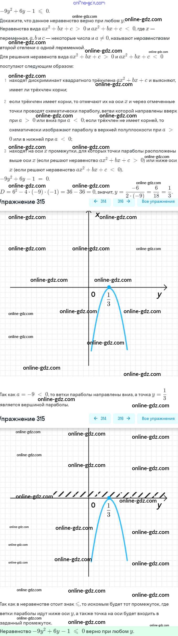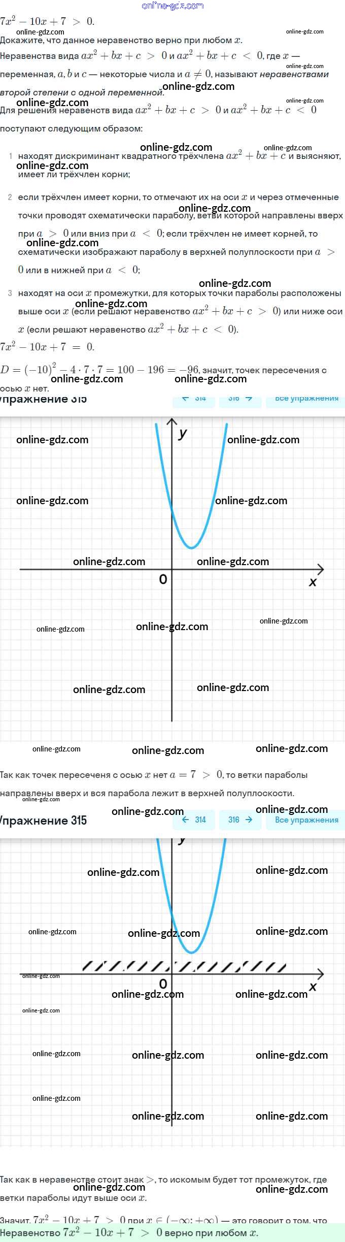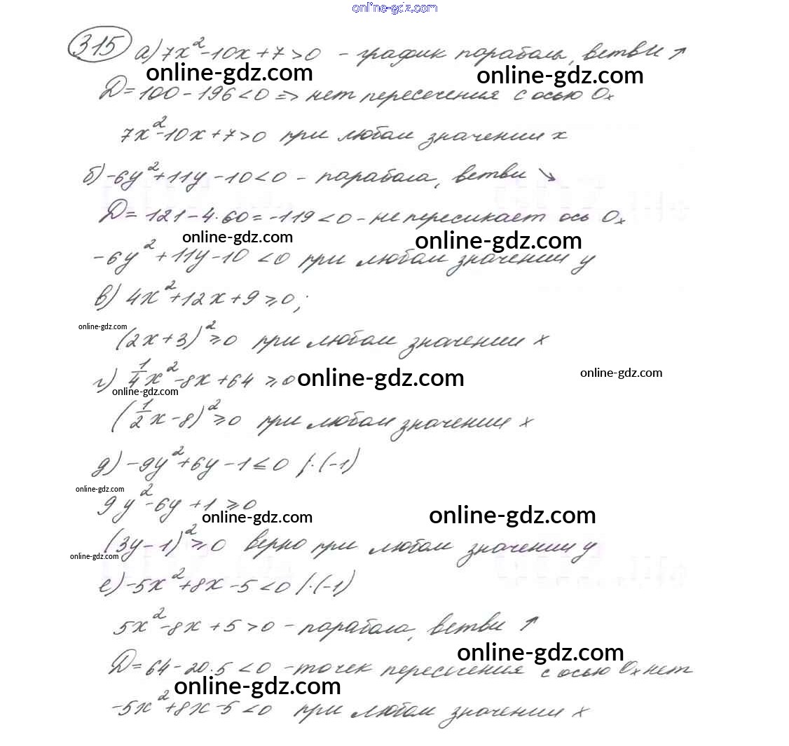 Готовые домашние задания по Алгебре за 9 класс Учебник Макарычев, Миндюк 2014 - Глава 2. Уравнения и неравенства с одной переменной (упражнения) 315