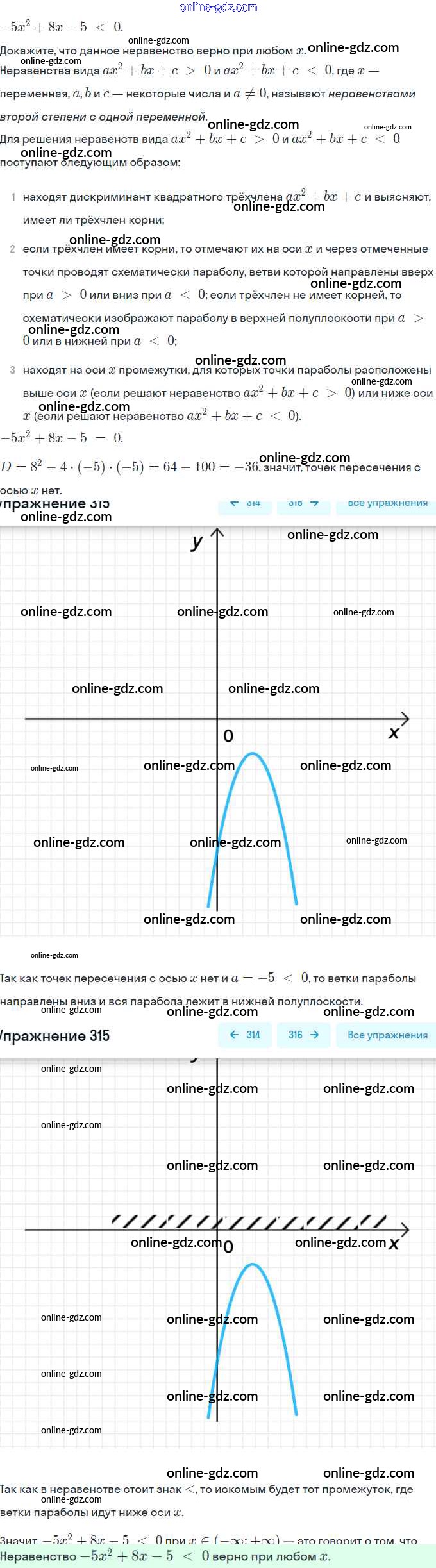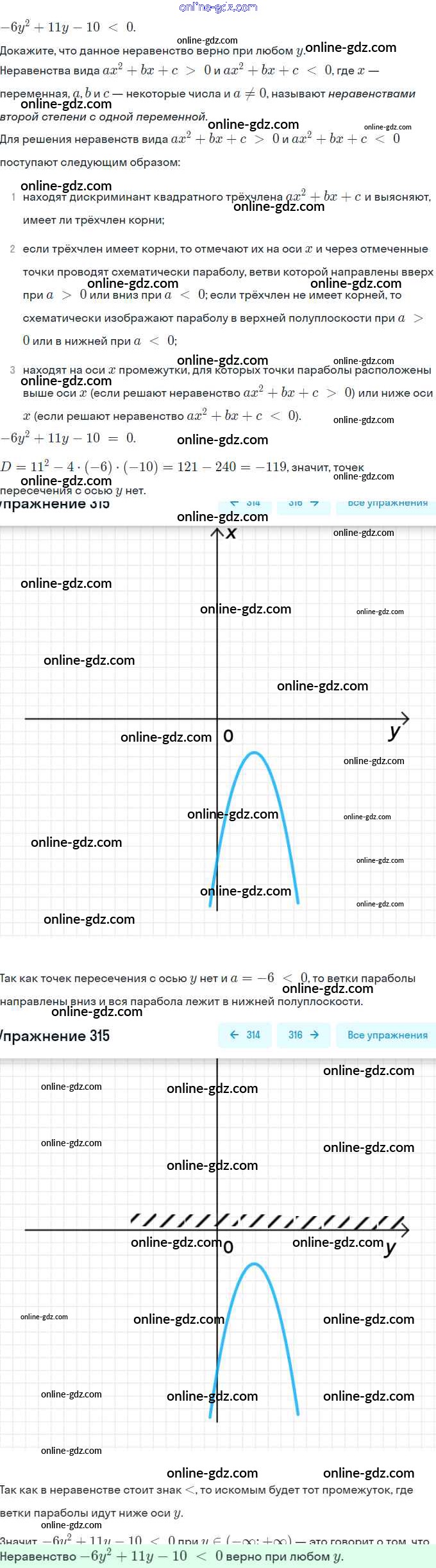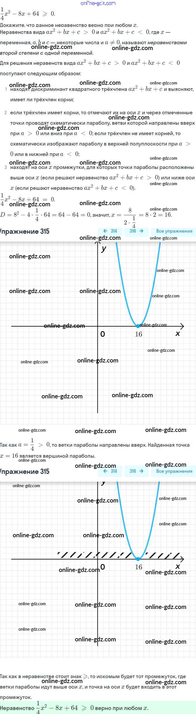 Готовые домашние задания по Алгебре за 9 класс Учебник Макарычев, Миндюк 2014 - Глава 2. Уравнения и неравенства с одной переменной (упражнения) 315