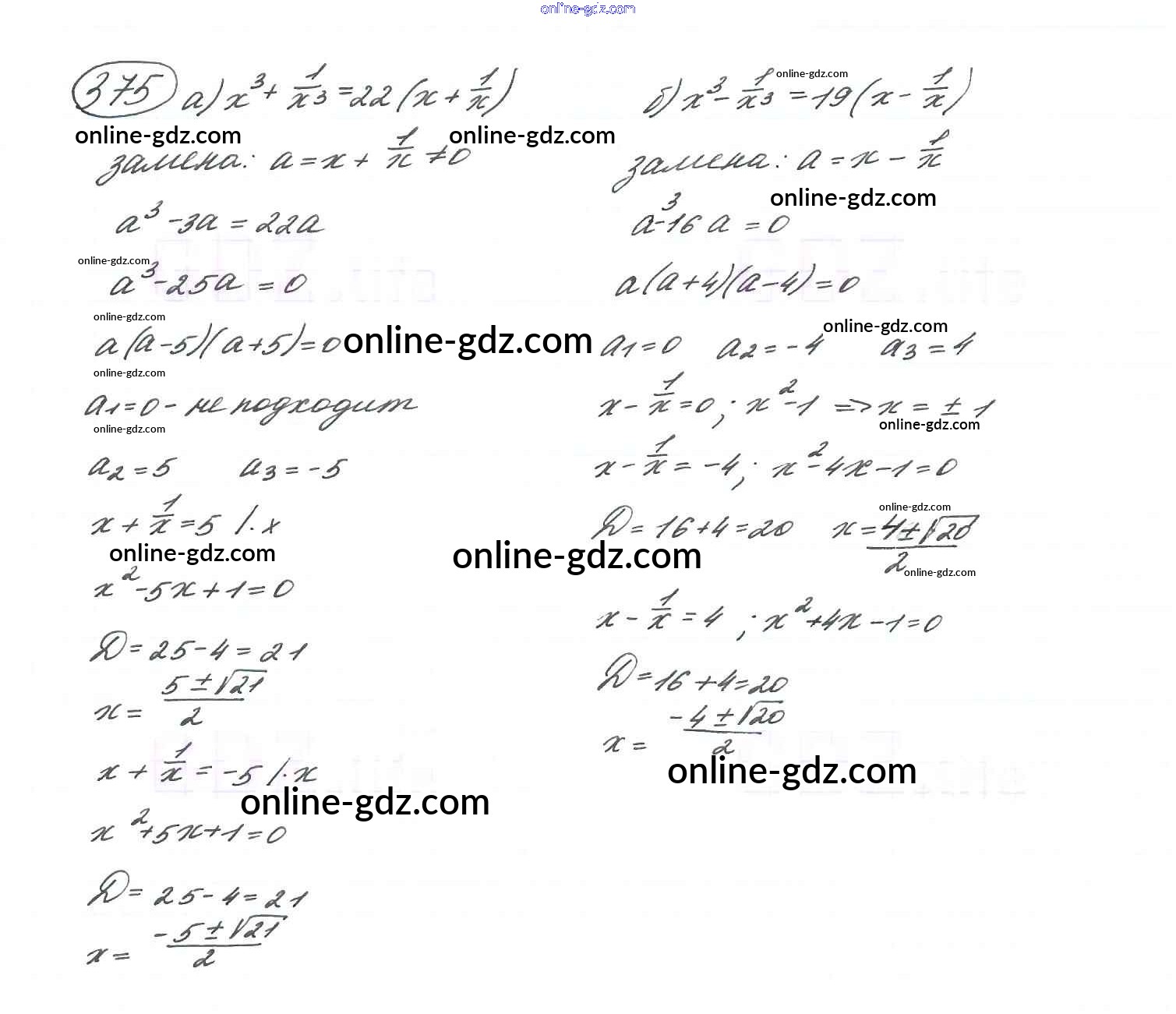 Готовые домашние задания по Алгебре за 9 класс Учебник Макарычев, Миндюк 2014 - Глава 2. Уравнения и неравенства с одной переменной (упражнения) 375