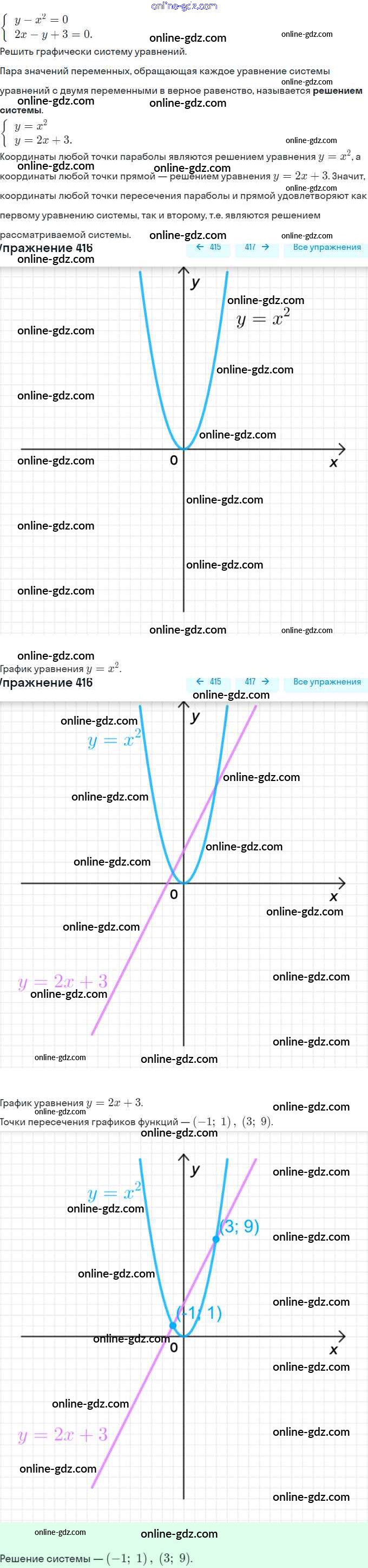 Готовые домашние задания по Алгебре за 9 класс Учебник Макарычев, Миндюк 2014 - Глава 3. Уравнения и неравенства с двумя переменными (упражнения) 416