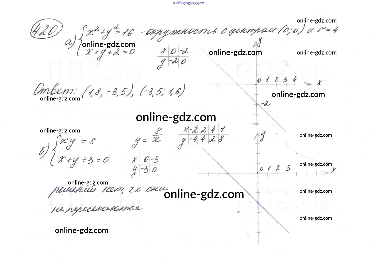 Готовые домашние задания по Алгебре за 9 класс Учебник Макарычев, Миндюк 2014 - Глава 3. Уравнения и неравенства с двумя переменными (упражнения) 420