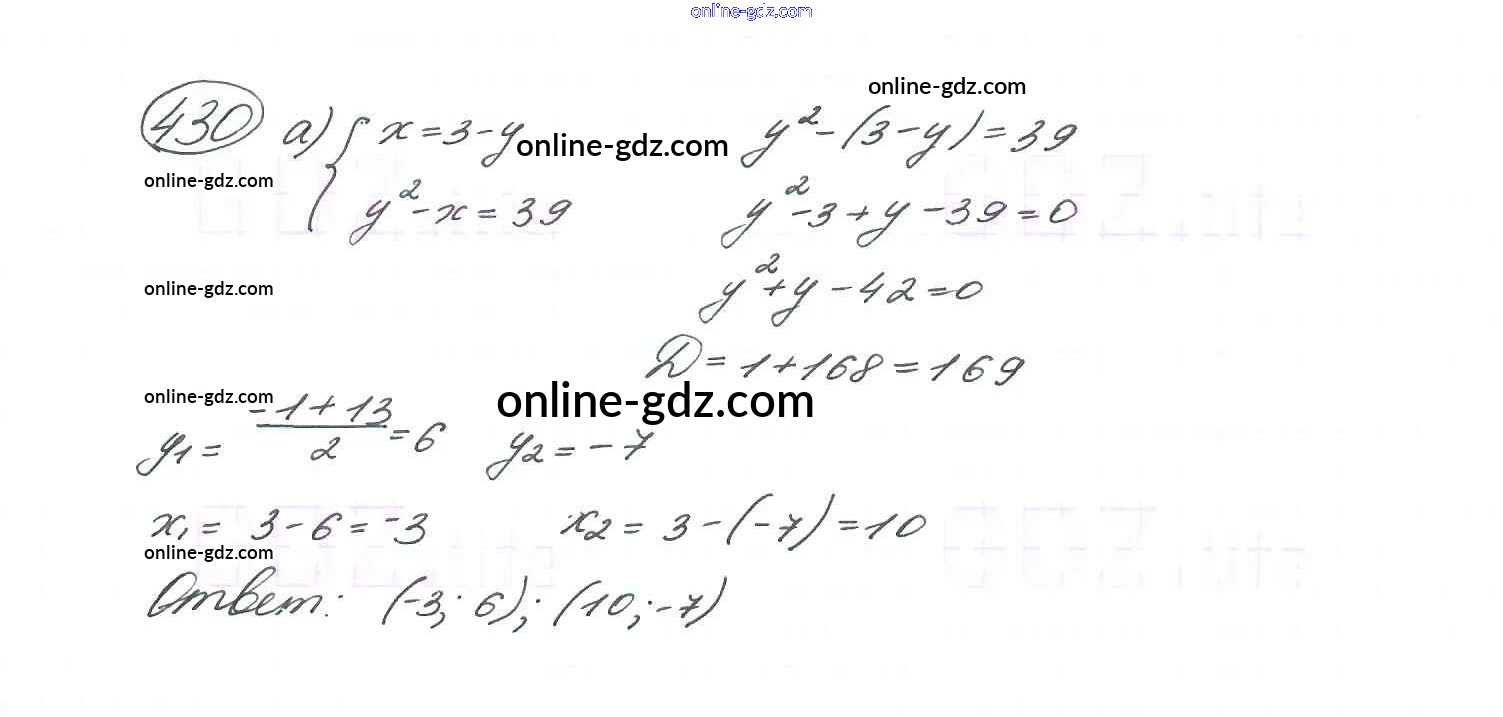 Готовые домашние задания по Алгебре за 9 класс Учебник Макарычев, Миндюк 2014 - Глава 3. Уравнения и неравенства с двумя переменными (упражнения) 430