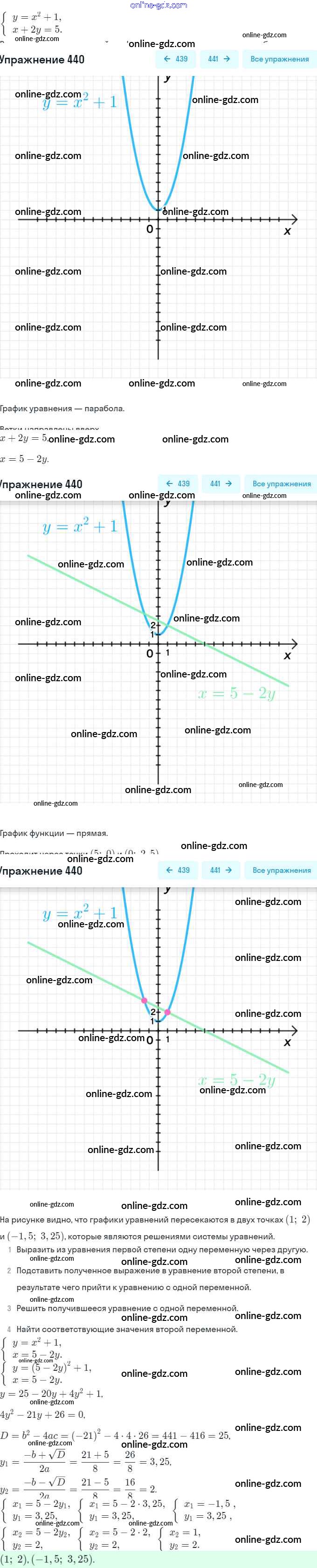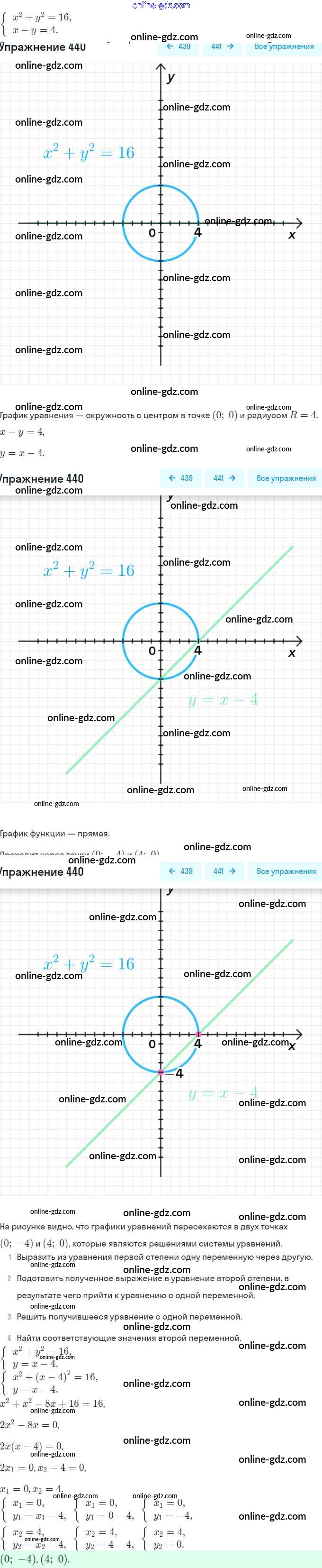Готовые домашние задания по Алгебре за 9 класс Учебник Макарычев, Миндюк 2014 - Глава 3. Уравнения и неравенства с двумя переменными (упражнения) 440