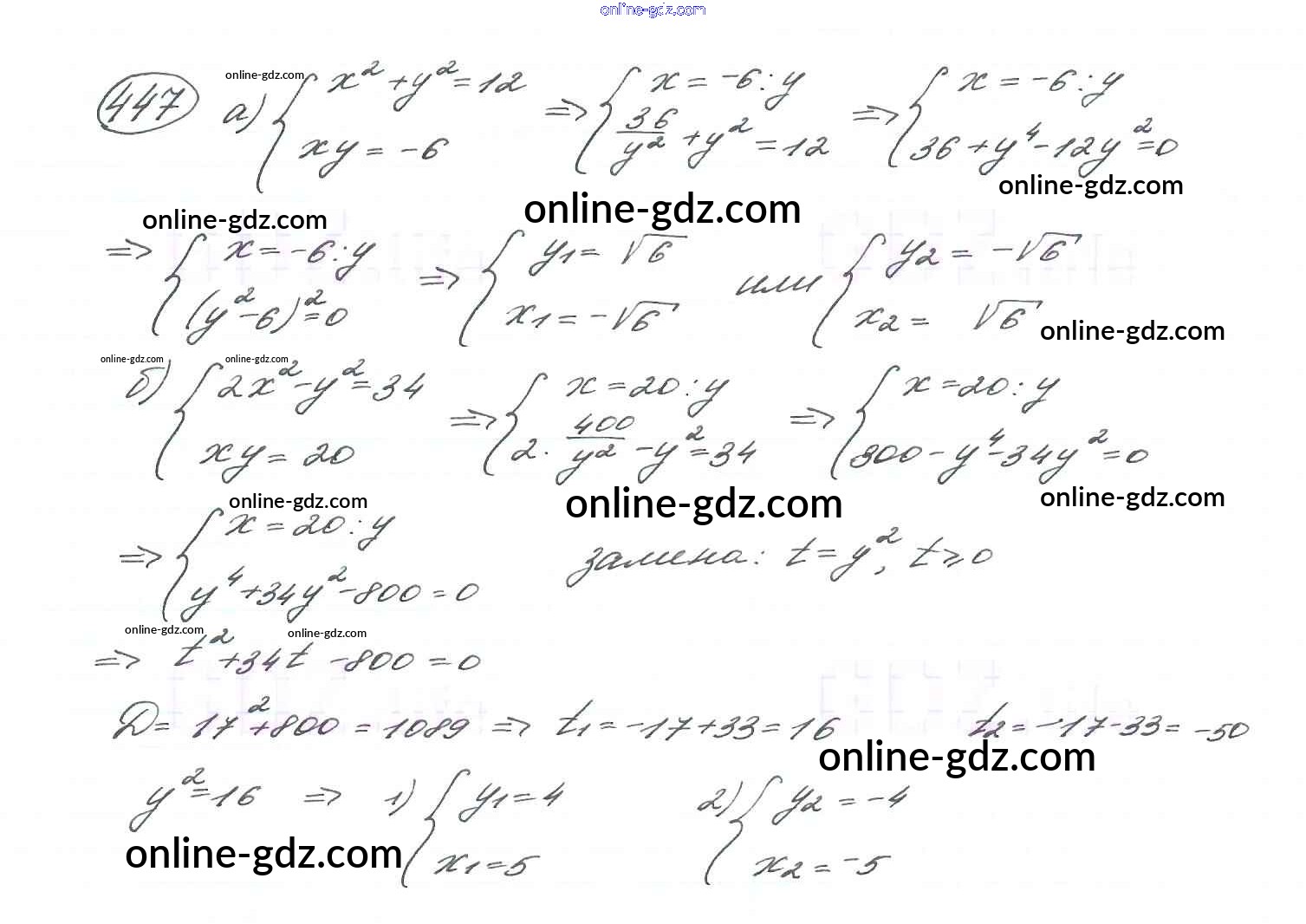 Готовые домашние задания по Алгебре за 9 класс Учебник Макарычев, Миндюк 2014 - Глава 3. Уравнения и неравенства с двумя переменными (упражнения) 447
