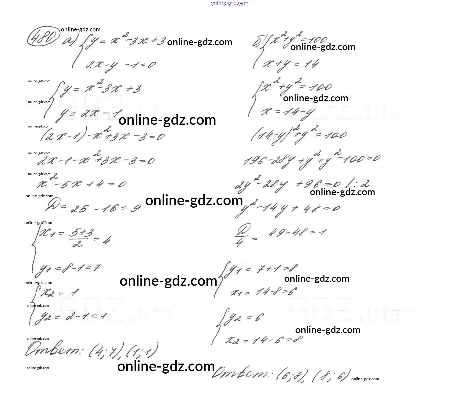 Готовые домашние задания по Алгебре за 9 класс Учебник Макарычев, Миндюк 2014 - Глава 3. Уравнения и неравенства с двумя переменными (упражнения) 480