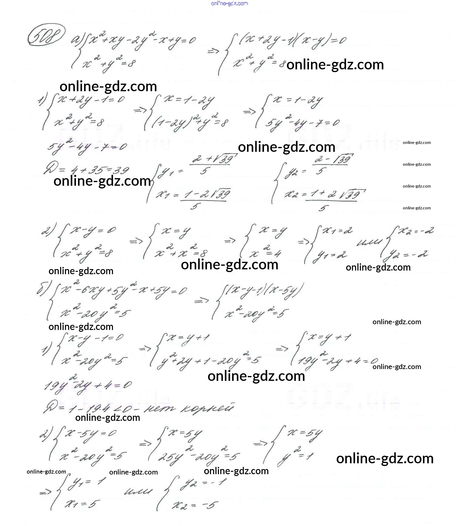 Готовые домашние задания по Алгебре за 9 класс Учебник Макарычев, Миндюк 2014 - Глава 3. Уравнения и неравенства с двумя переменными (упражнения) 508