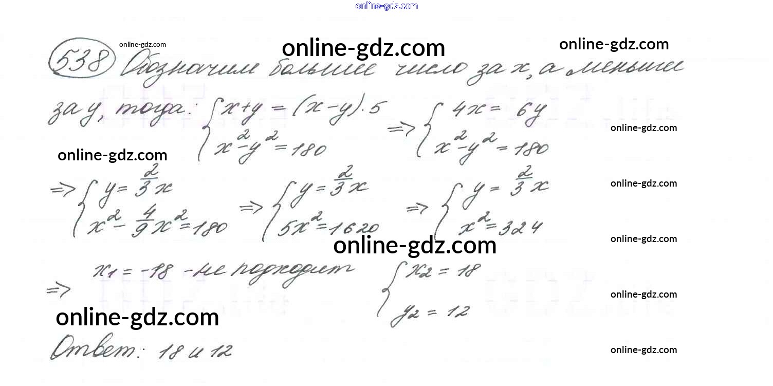 Готовые домашние задания по Алгебре за 9 класс Учебник Макарычев, Миндюк 2014 - Глава 3. Уравнения и неравенства с двумя переменными (упражнения) 538