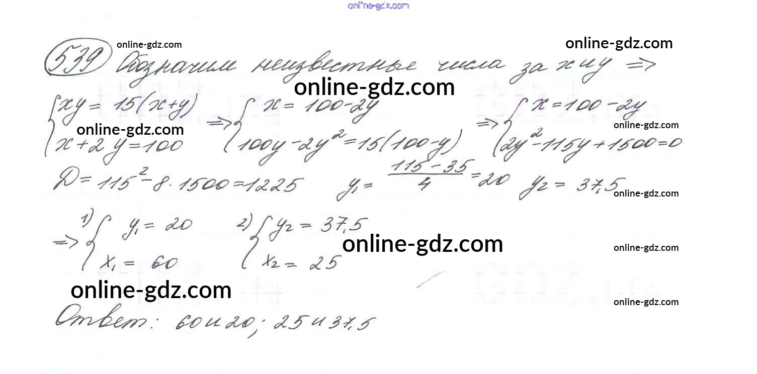 Готовые домашние задания по Алгебре за 9 класс Учебник Макарычев, Миндюк 2014 - Глава 3. Уравнения и неравенства с двумя переменными (упражнения) 539