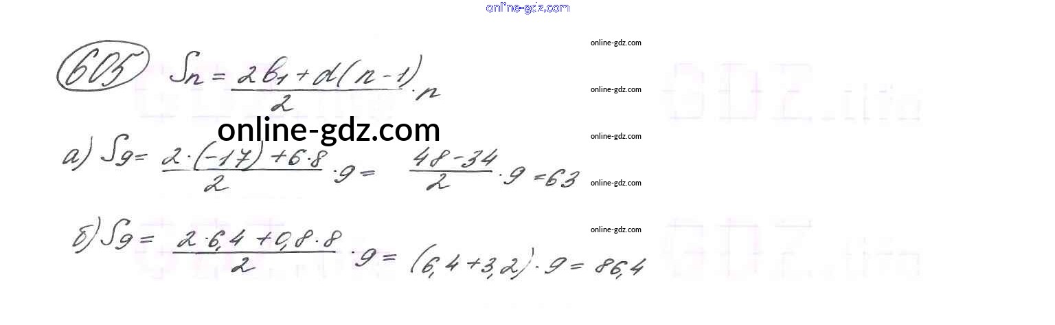 Готовые домашние задания по Алгебре за 9 класс Учебник Макарычев, Миндюк 2014 - Глава 4. Арифметическая и геометрическая прогрессии (упражнения) 605