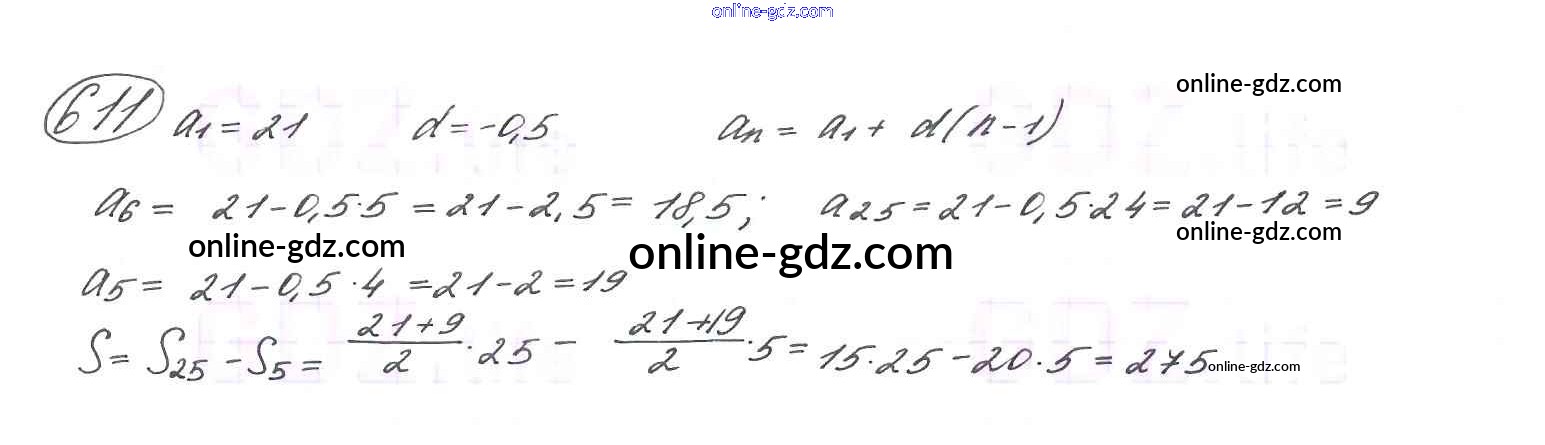 Готовые домашние задания по Алгебре за 9 класс Учебник Макарычев, Миндюк 2014 - Глава 4. Арифметическая и геометрическая прогрессии (упражнения) 611