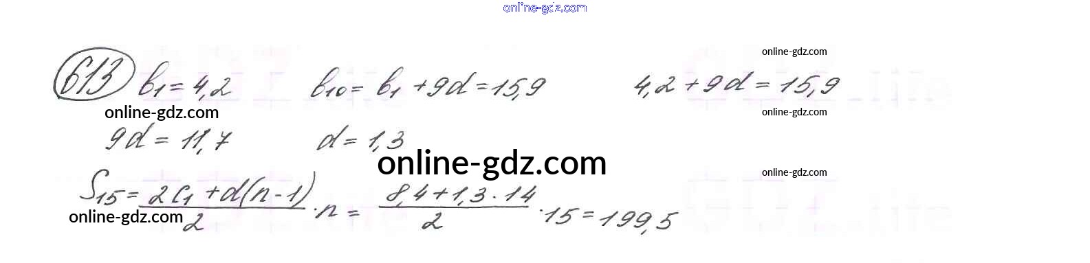 Готовые домашние задания по Алгебре за 9 класс Учебник Макарычев, Миндюк 2014 - Глава 4. Арифметическая и геометрическая прогрессии (упражнения) 613