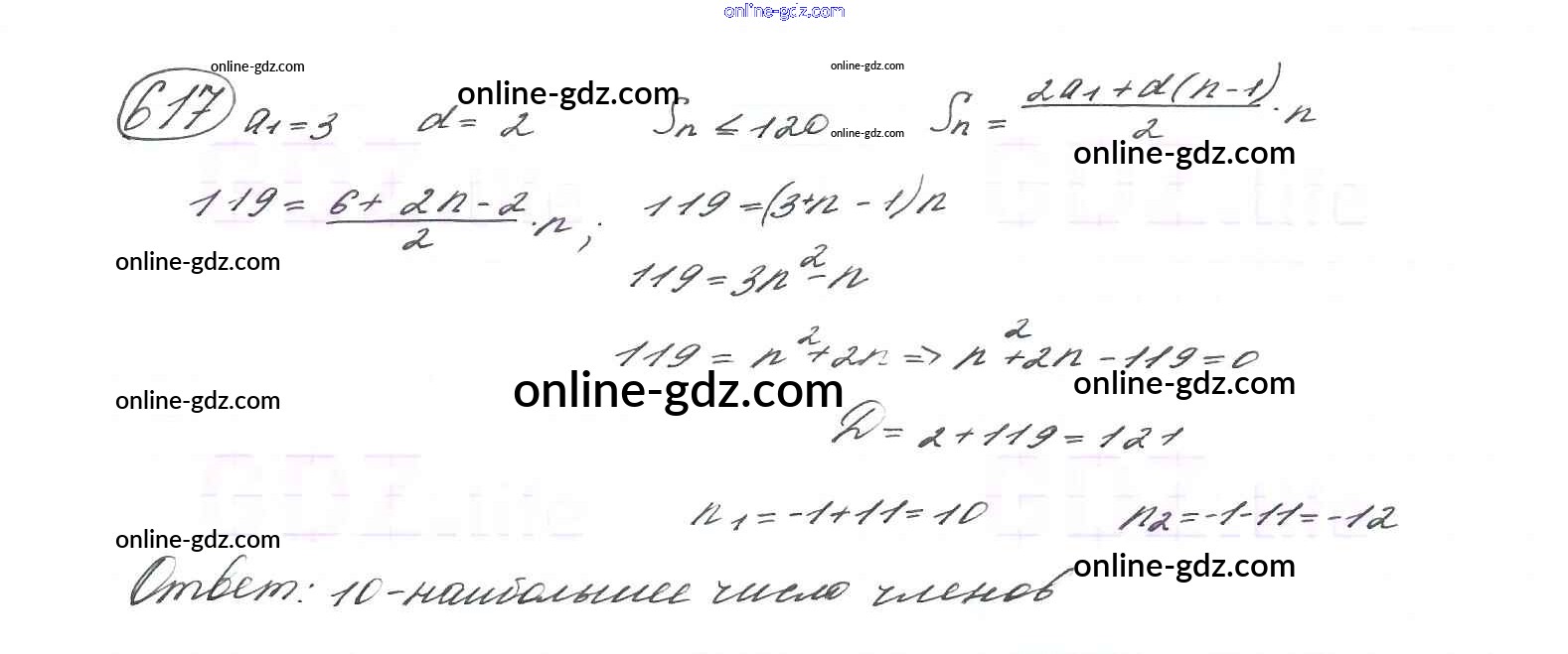 Готовые домашние задания по Алгебре за 9 класс Учебник Макарычев, Миндюк 2014 - Глава 4. Арифметическая и геометрическая прогрессии (упражнения) 617