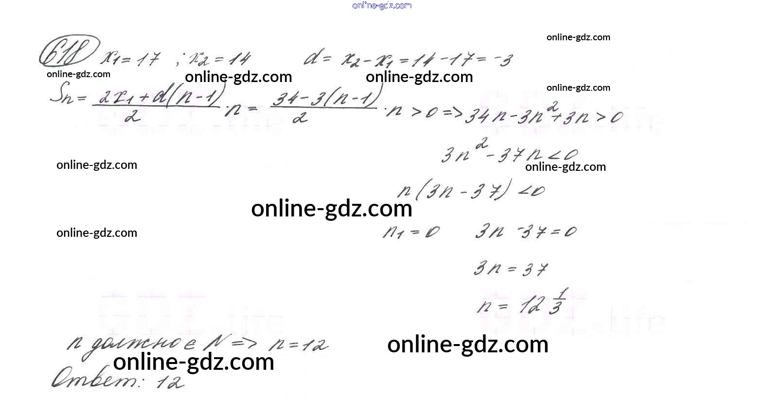 Готовые домашние задания по Алгебре за 9 класс Учебник Макарычев, Миндюк 2014 - Глава 4. Арифметическая и геометрическая прогрессии (упражнения) 618