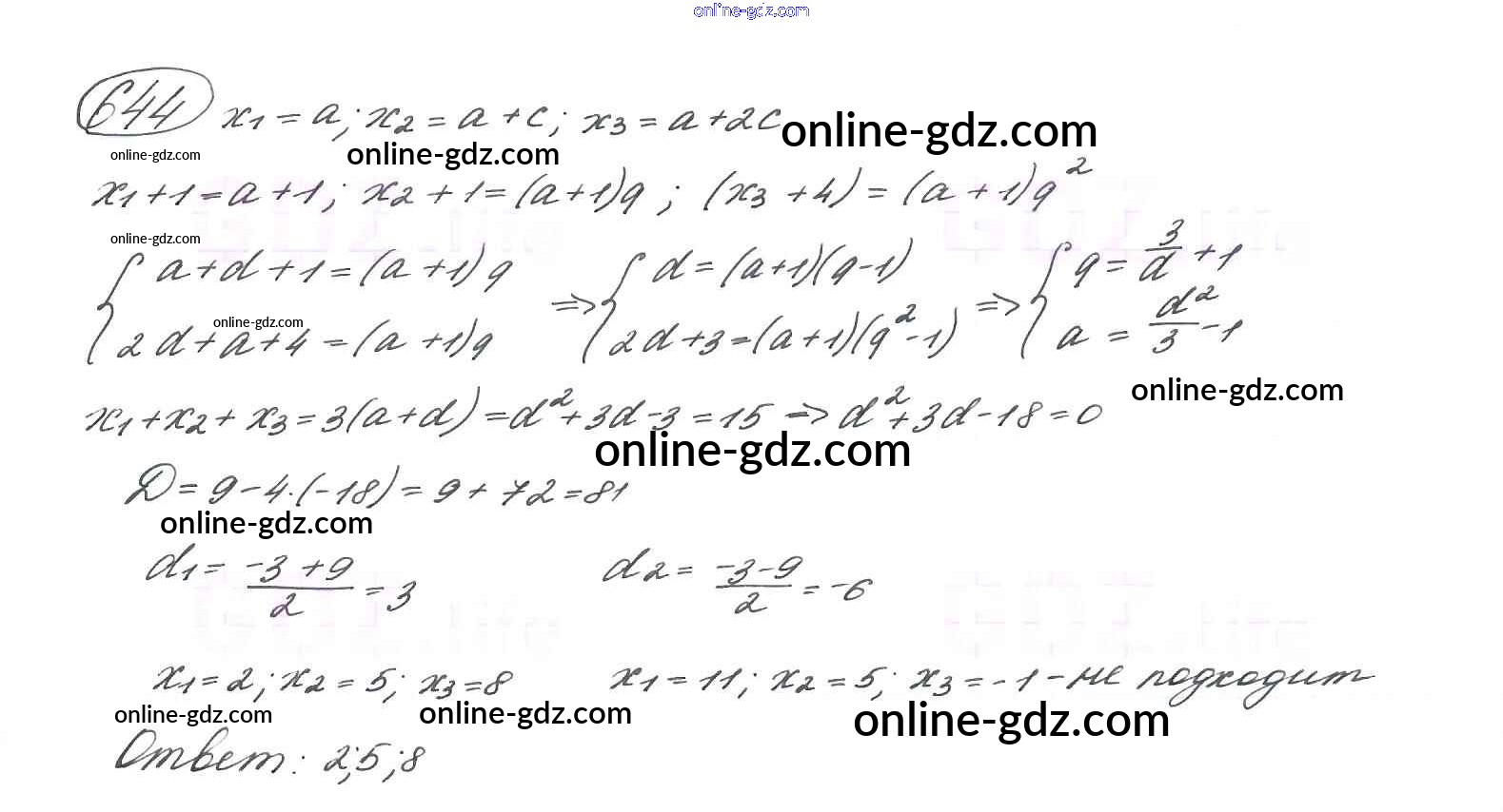 Готовые домашние задания по Алгебре за 9 класс Учебник Макарычев, Миндюк 2014 - Глава 4. Арифметическая и геометрическая прогрессии (упражнения) 644