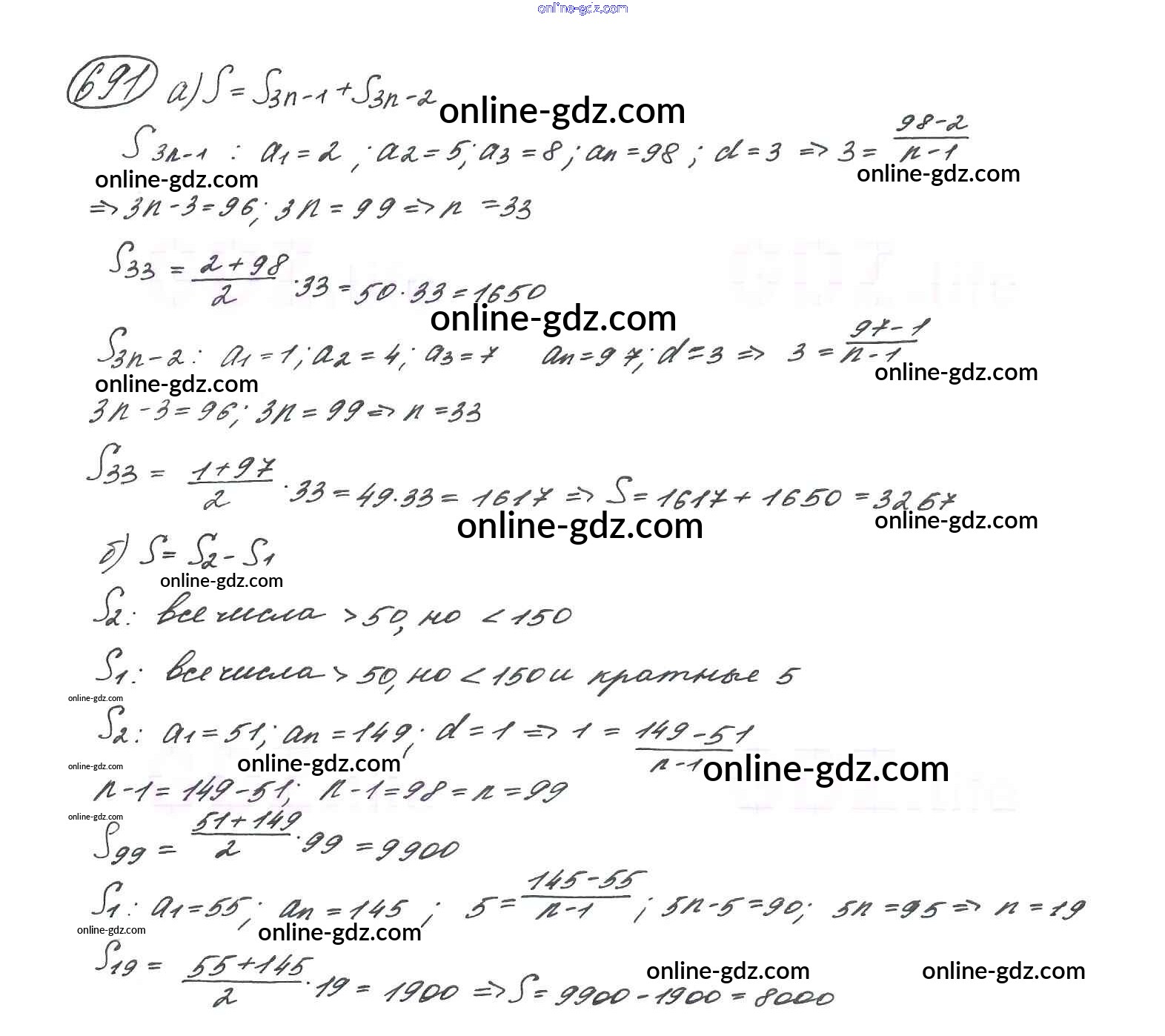 Готовые домашние задания по Алгебре за 9 класс Учебник Макарычев, Миндюк 2014 - Глава 4. Арифметическая и геометрическая прогрессии (упражнения) 691