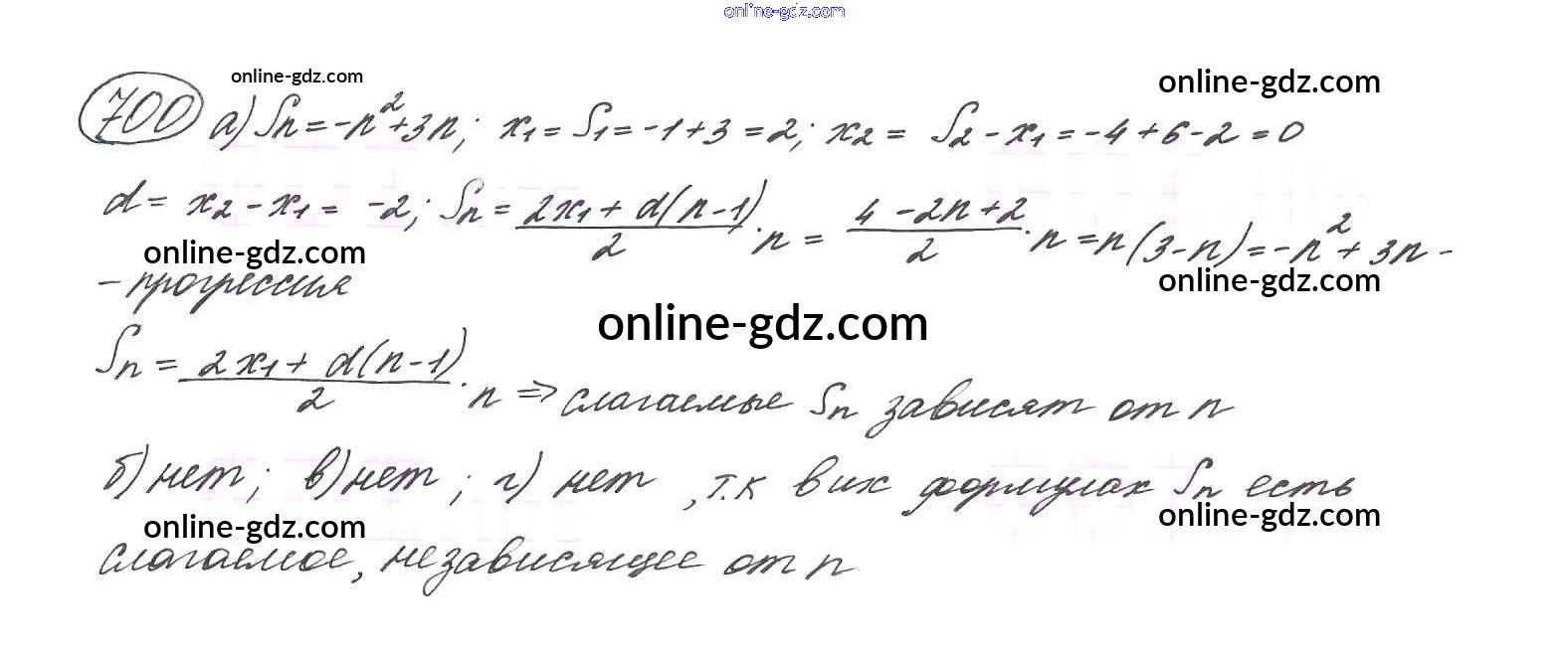 Готовые домашние задания по Алгебре за 9 класс Учебник Макарычев, Миндюк 2014 - Глава 4. Арифметическая и геометрическая прогрессии (упражнения) 700