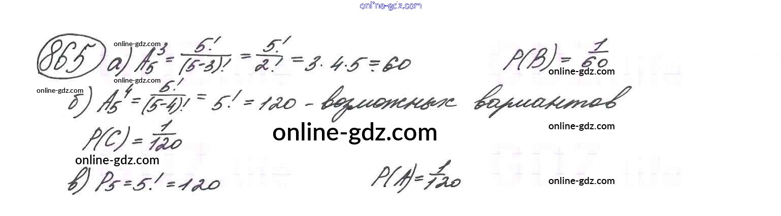 Готовые домашние задания по Алгебре за 9 класс Учебник Макарычев, Миндюк 2014 - Глава 5. Элементы комбинаторики и теории вероятностей (упражнения) 865