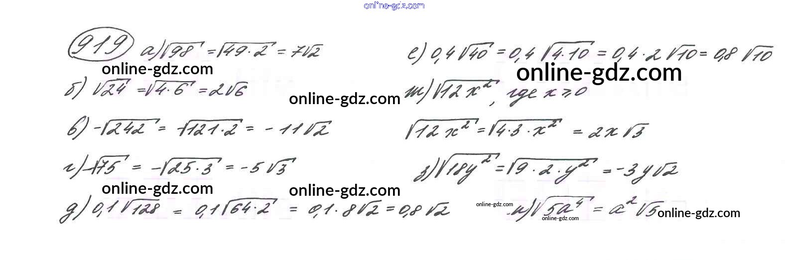 Готовые домашние задания по Алгебре за 9 класс Учебник Макарычев, Миндюк 2014 - Упражнения для повторения курса 7-9 классов 919