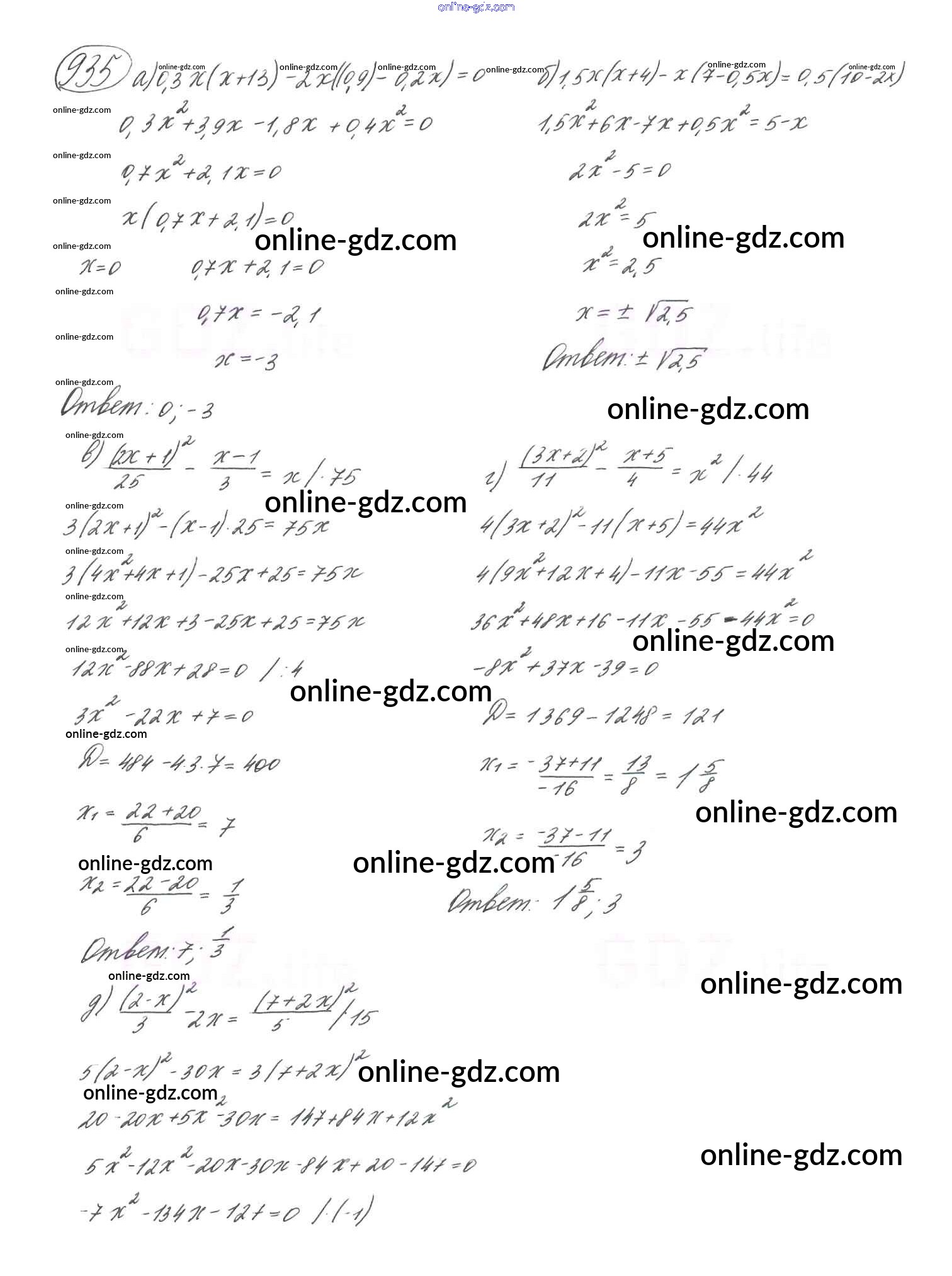 Готовые домашние задания по Алгебре за 9 класс Учебник Макарычев, Миндюк 2014 - Упражнения для повторения курса 7-9 классов 935