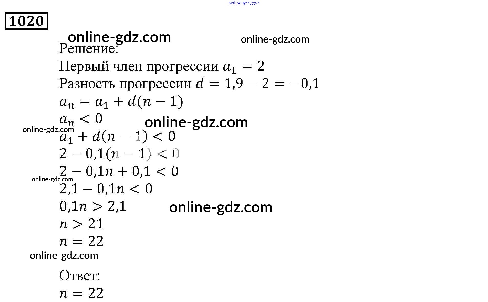 Готовые домашние задания по Алгебре за 9 класс Учебник Мерзляк, Полонский Алгоритм успеха 2016 - Упражнения 1020
