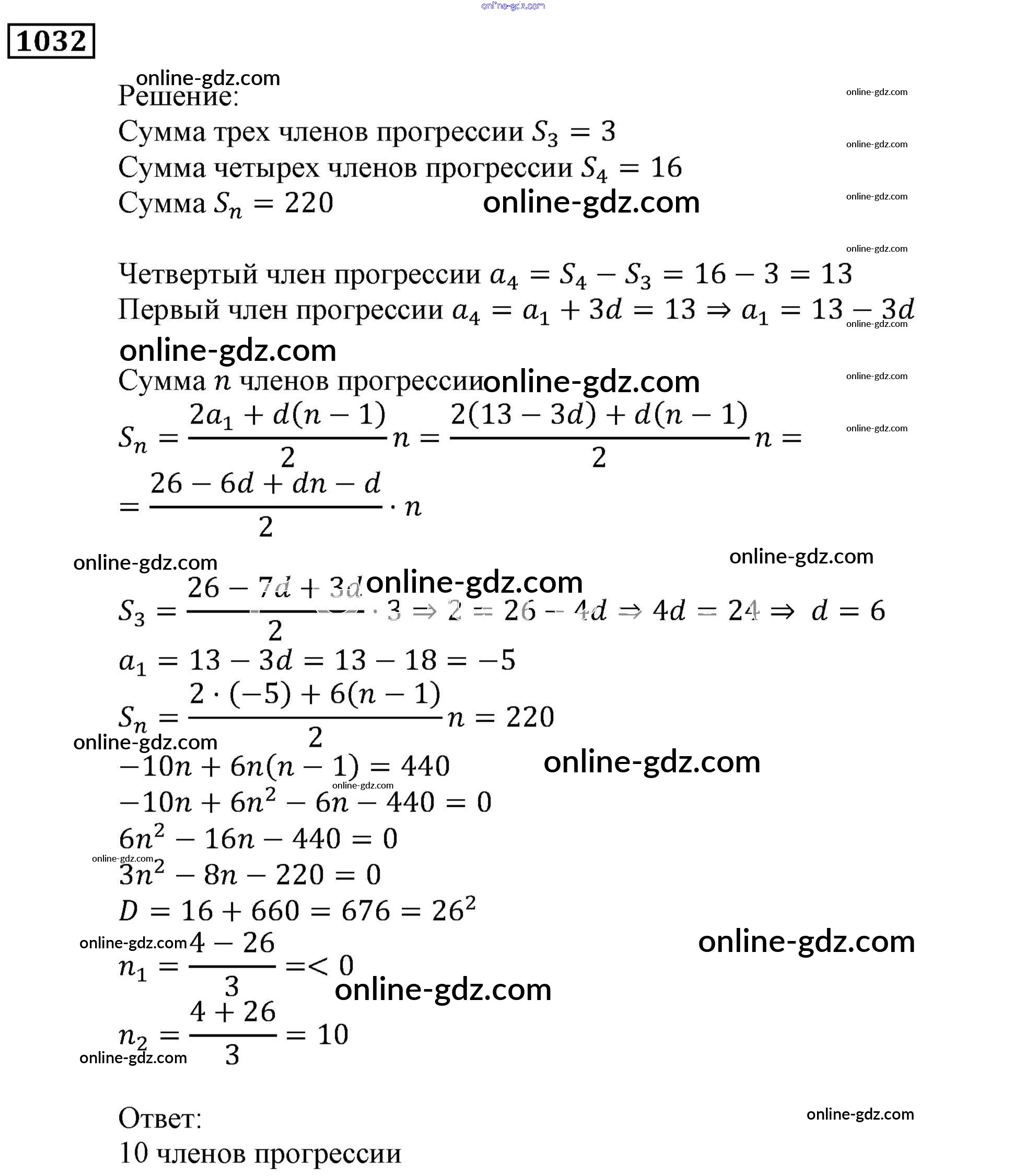 Готовые домашние задания по Алгебре за 9 класс Учебник Мерзляк, Полонский Алгоритм успеха 2016 - Упражнения 1032