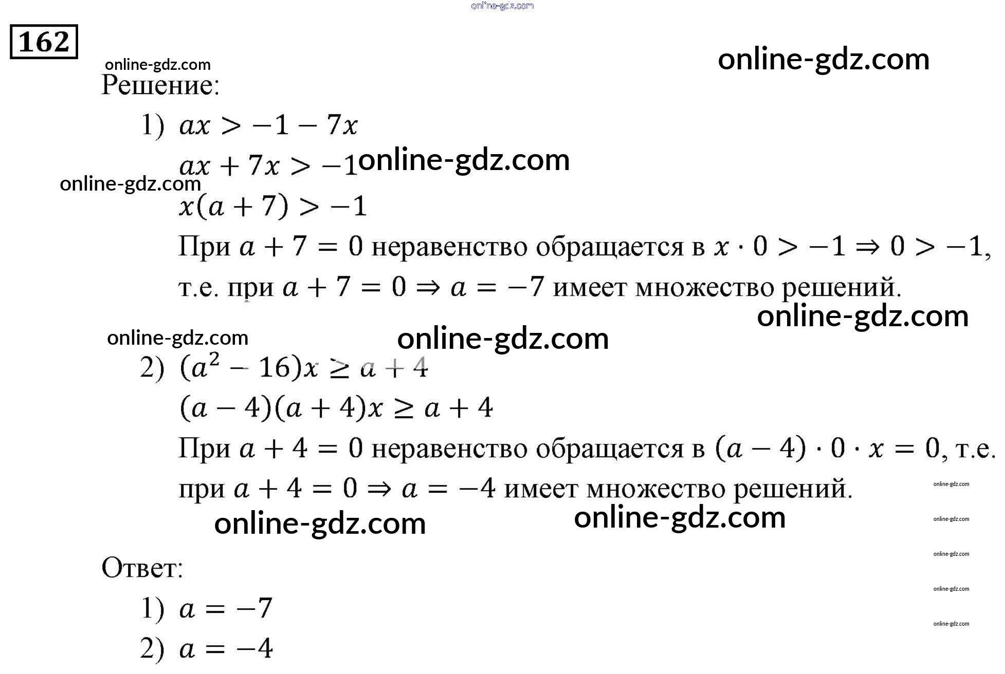 Готовые домашние задания по Алгебре за 9 класс Учебник Мерзляк, Полонский Алгоритм успеха 2016 - Упражнения 162