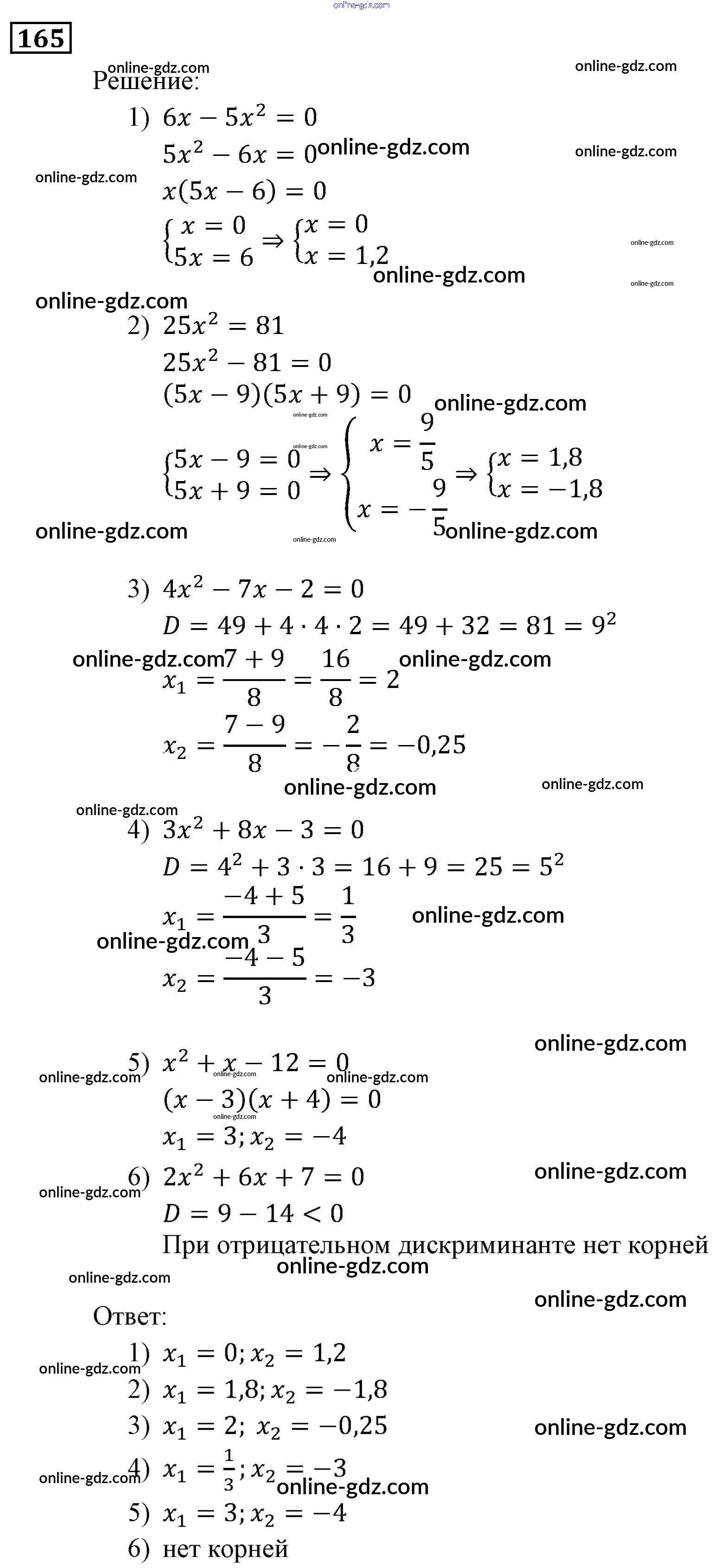 Готовые домашние задания по Алгебре за 9 класс Учебник Мерзляк, Полонский Алгоритм успеха 2016 - Упражнения 165