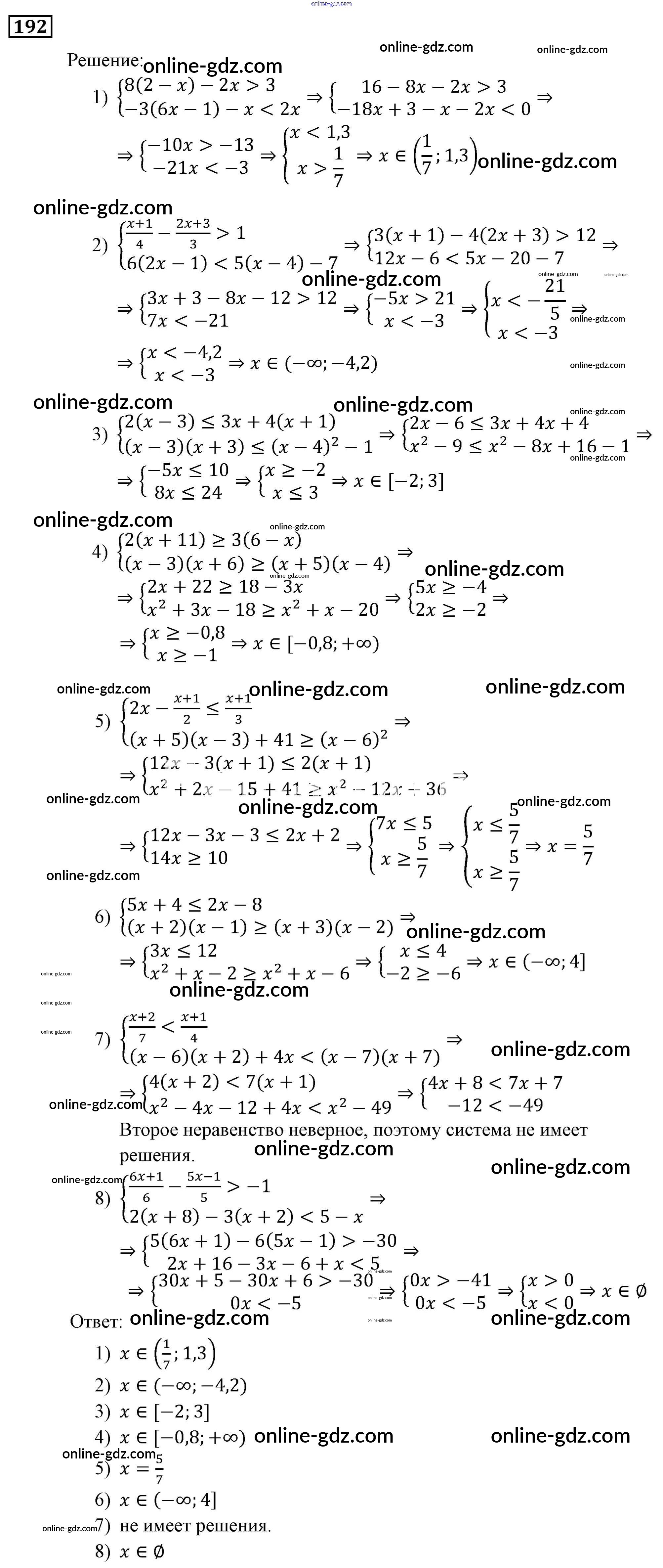 Готовые домашние задания по Алгебре за 9 класс Учебник Мерзляк, Полонский Алгоритм успеха 2016 - Упражнения 192