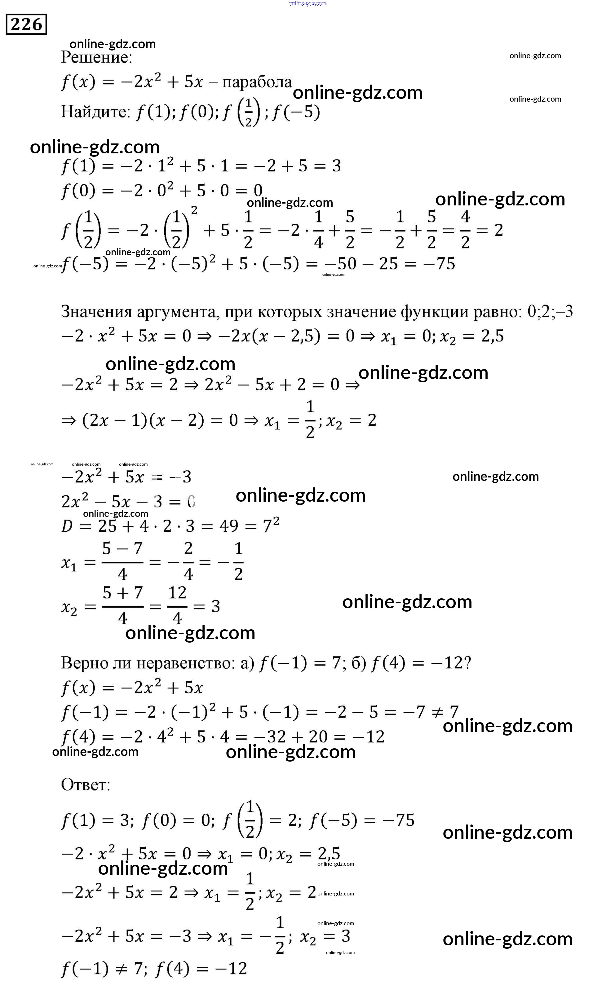 Готовые домашние задания по Алгебре за 9 класс Учебник Мерзляк, Полонский Алгоритм успеха 2016 - Упражнения 226