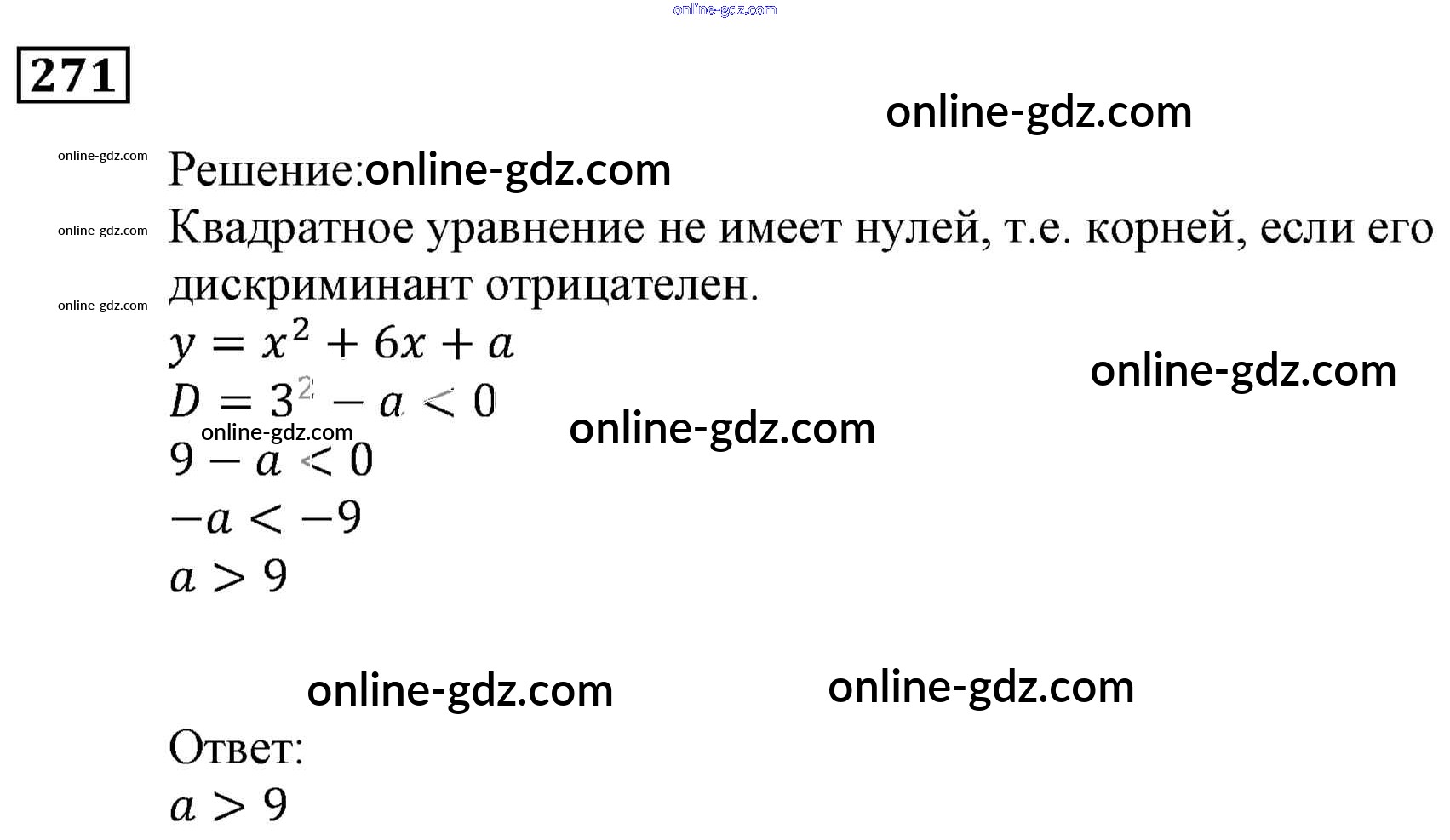 Готовые домашние задания по Алгебре за 9 класс Учебник Мерзляк, Полонский Алгоритм успеха 2016 - Упражнения 271