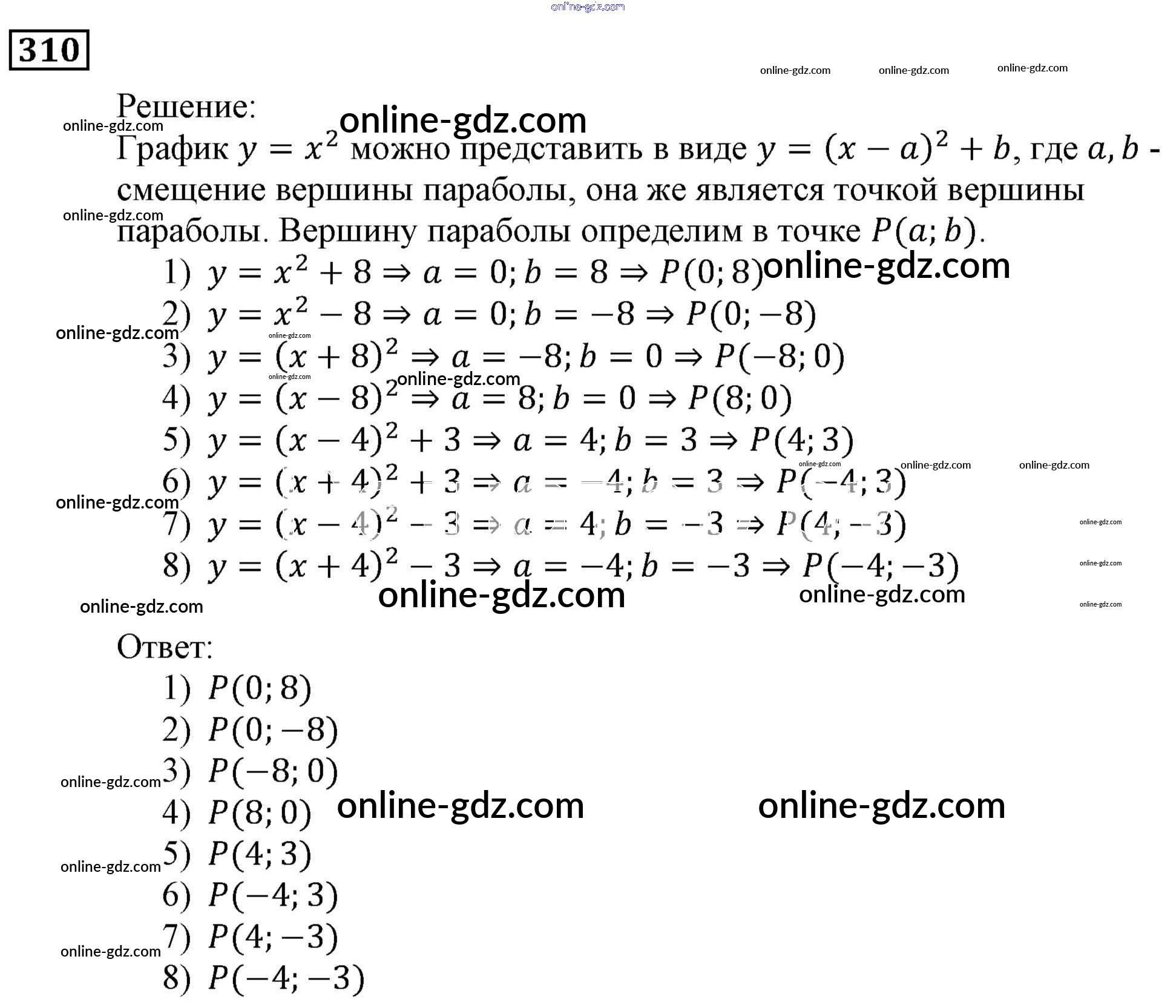 Готовые домашние задания по Алгебре за 9 класс Учебник Мерзляк, Полонский Алгоритм успеха 2016 - Упражнения 310
