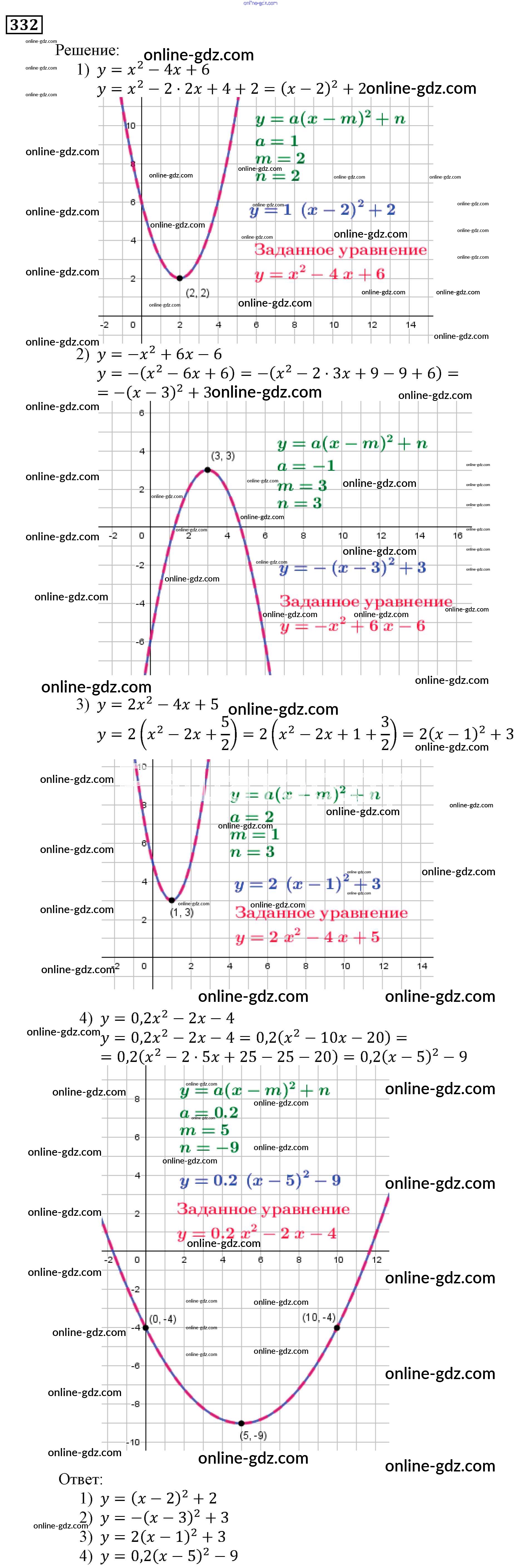 Готовые домашние задания по Алгебре за 9 класс Учебник Мерзляк, Полонский Алгоритм успеха 2016 - Упражнения 332