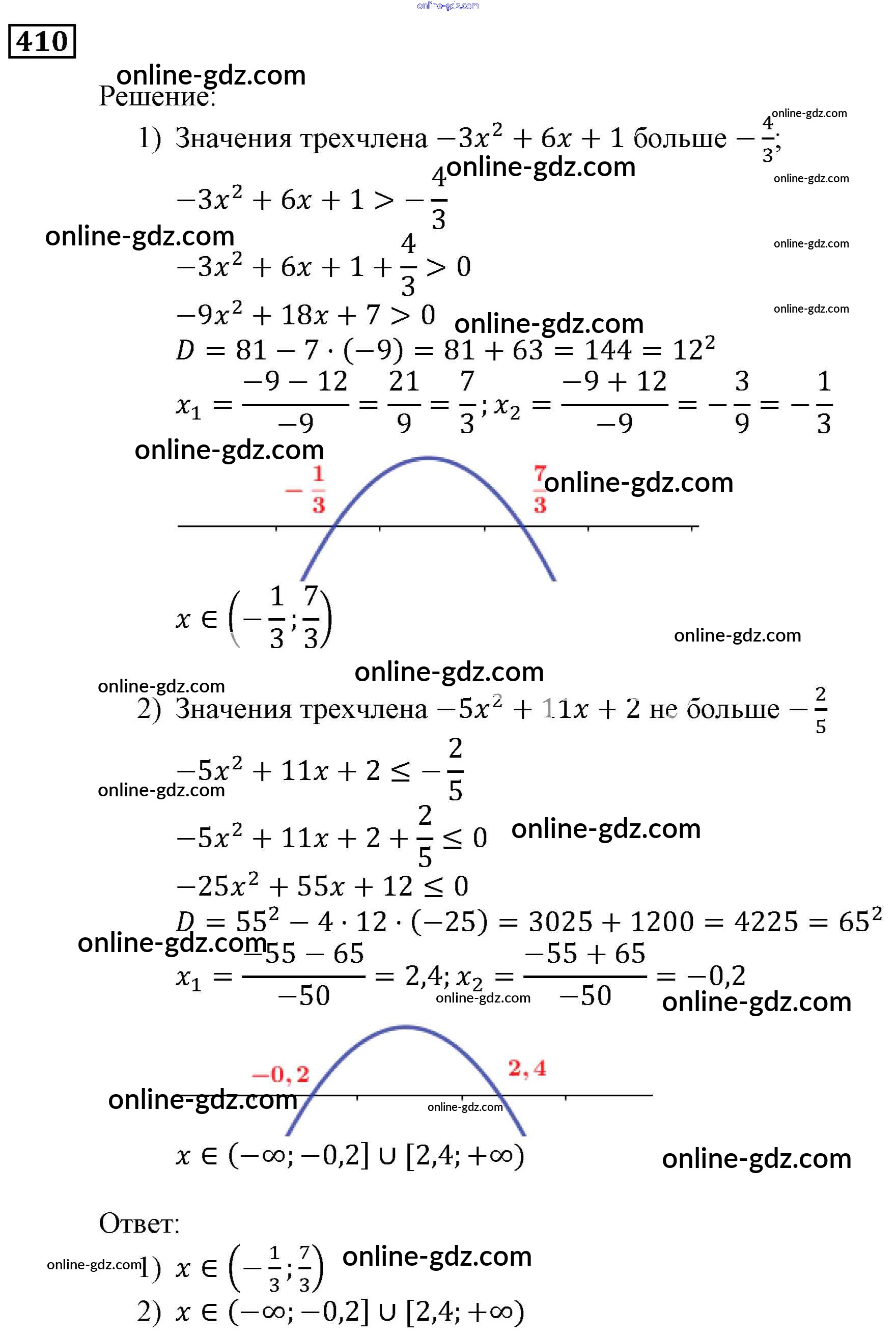Готовые домашние задания по Алгебре за 9 класс Учебник Мерзляк, Полонский Алгоритм успеха 2016 - Упражнения 410