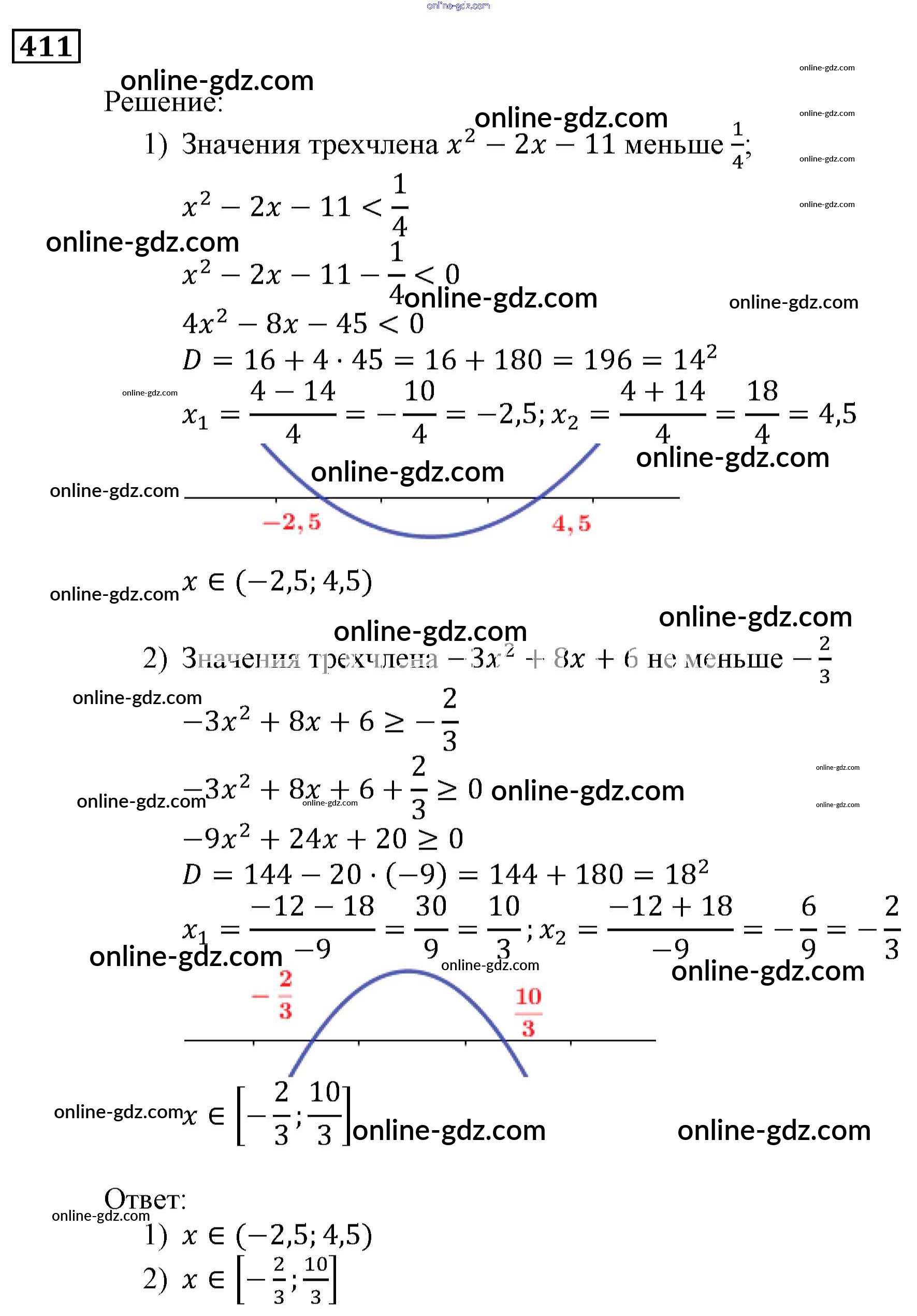 Готовые домашние задания по Алгебре за 9 класс Учебник Мерзляк, Полонский Алгоритм успеха 2016 - Упражнения 411