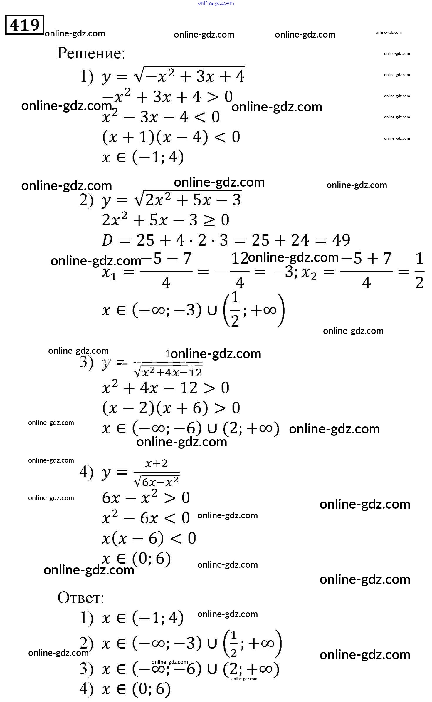 Готовые домашние задания по Алгебре за 9 класс Учебник Мерзляк, Полонский Алгоритм успеха 2016 - Упражнения 419