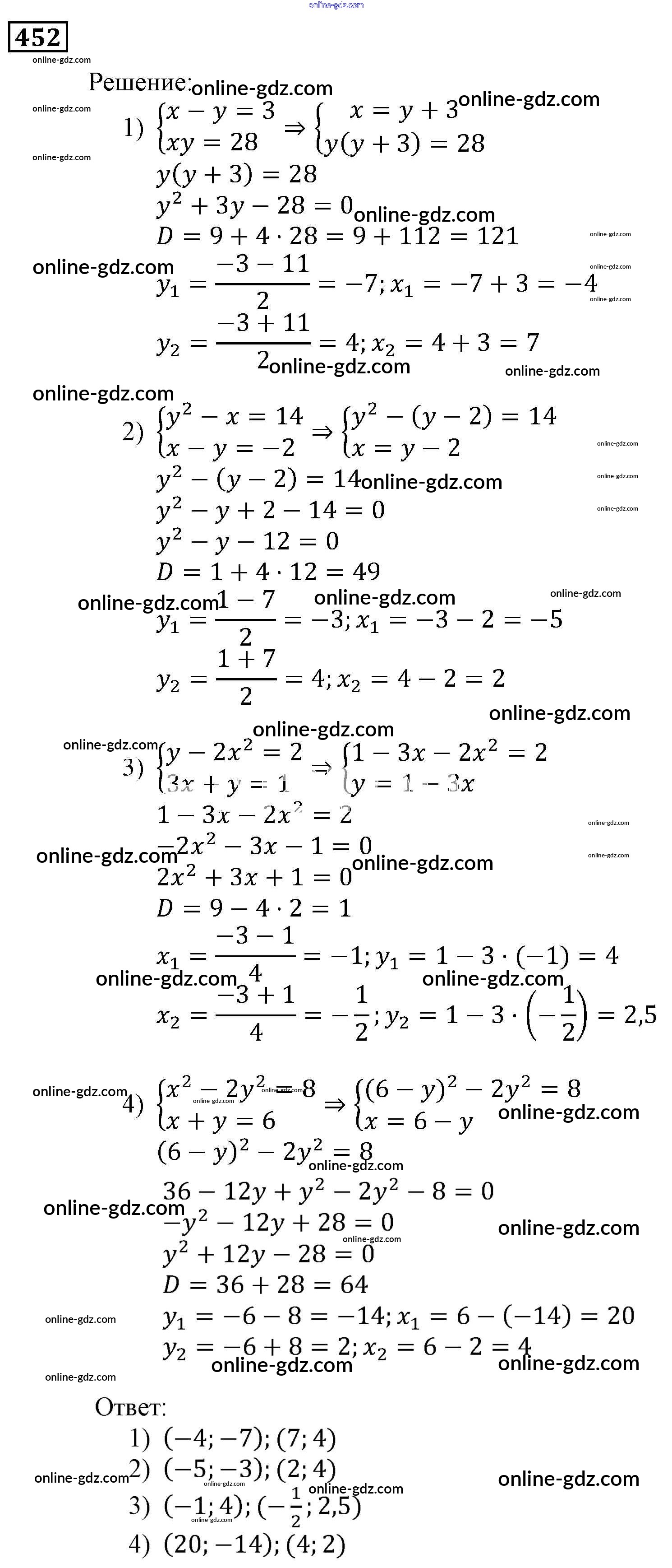 Готовые домашние задания по Алгебре за 9 класс Учебник Мерзляк, Полонский Алгоритм успеха 2016 - Упражнения 452