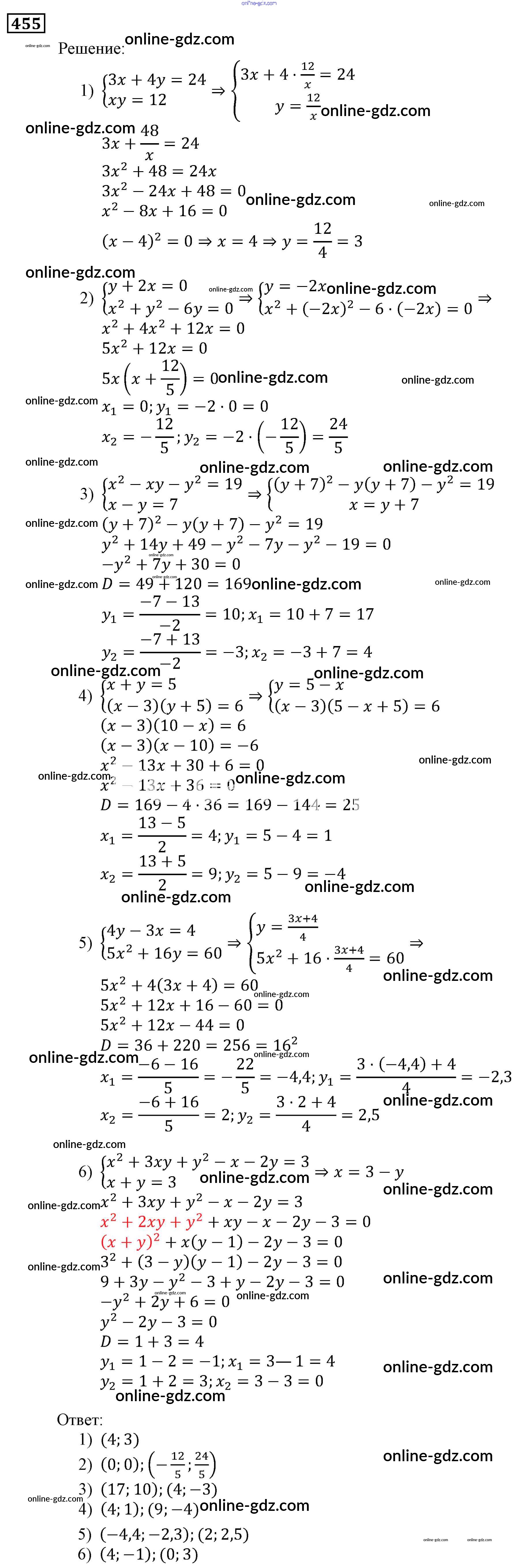 Готовые домашние задания по Алгебре за 9 класс Учебник Мерзляк, Полонский Алгоритм успеха 2016 - Упражнения 455