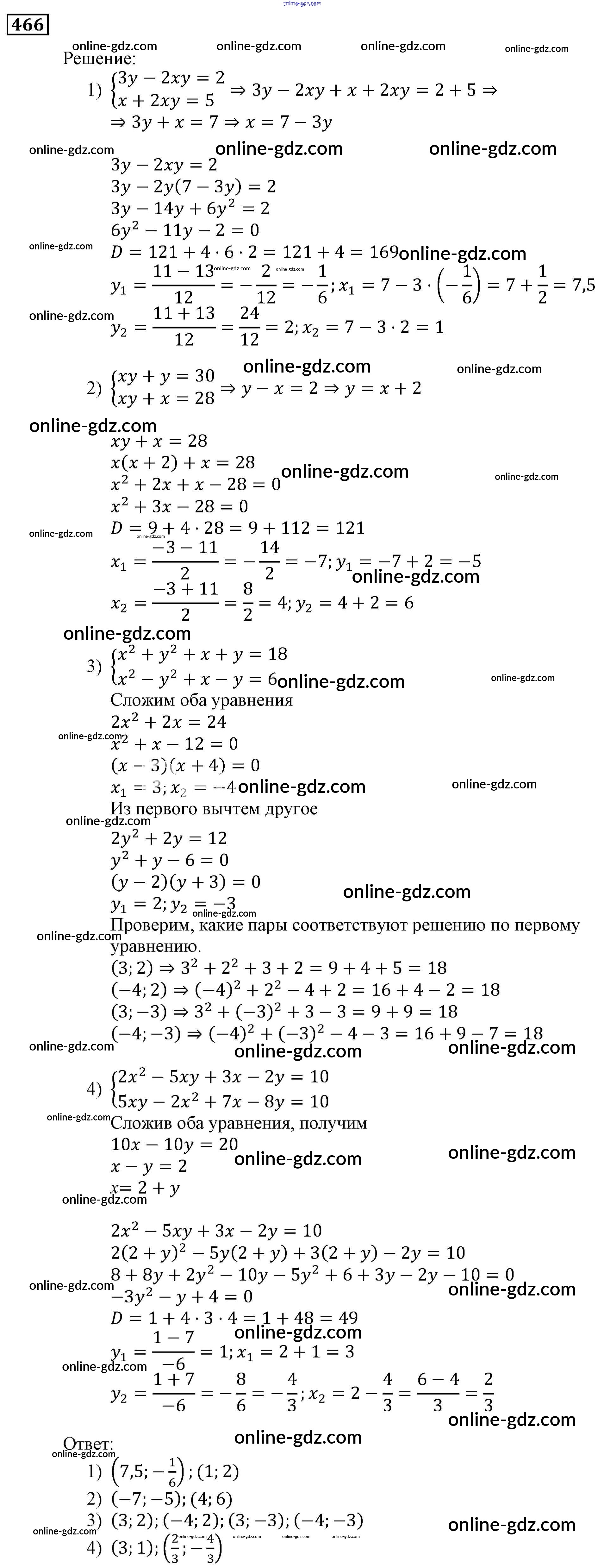 Готовые домашние задания по Алгебре за 9 класс Учебник Мерзляк, Полонский Алгоритм успеха 2016 - Упражнения 466