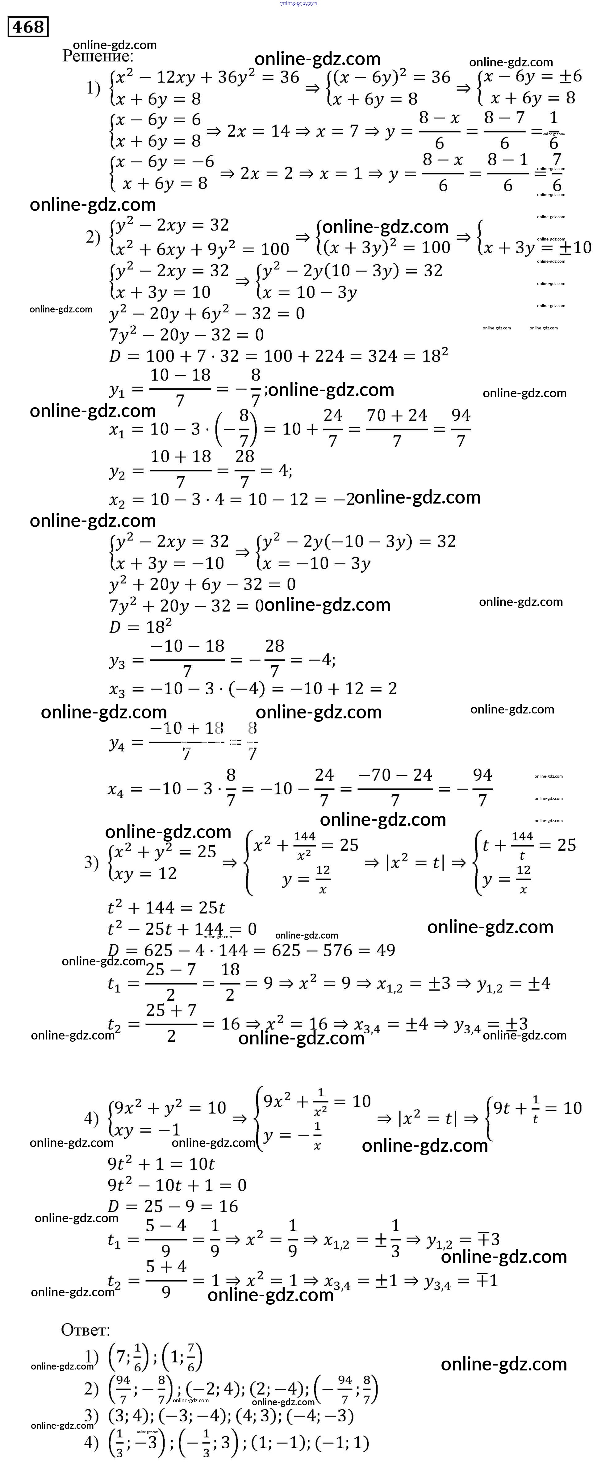 Готовые домашние задания по Алгебре за 9 класс Учебник Мерзляк, Полонский Алгоритм успеха 2016 - Упражнения 468