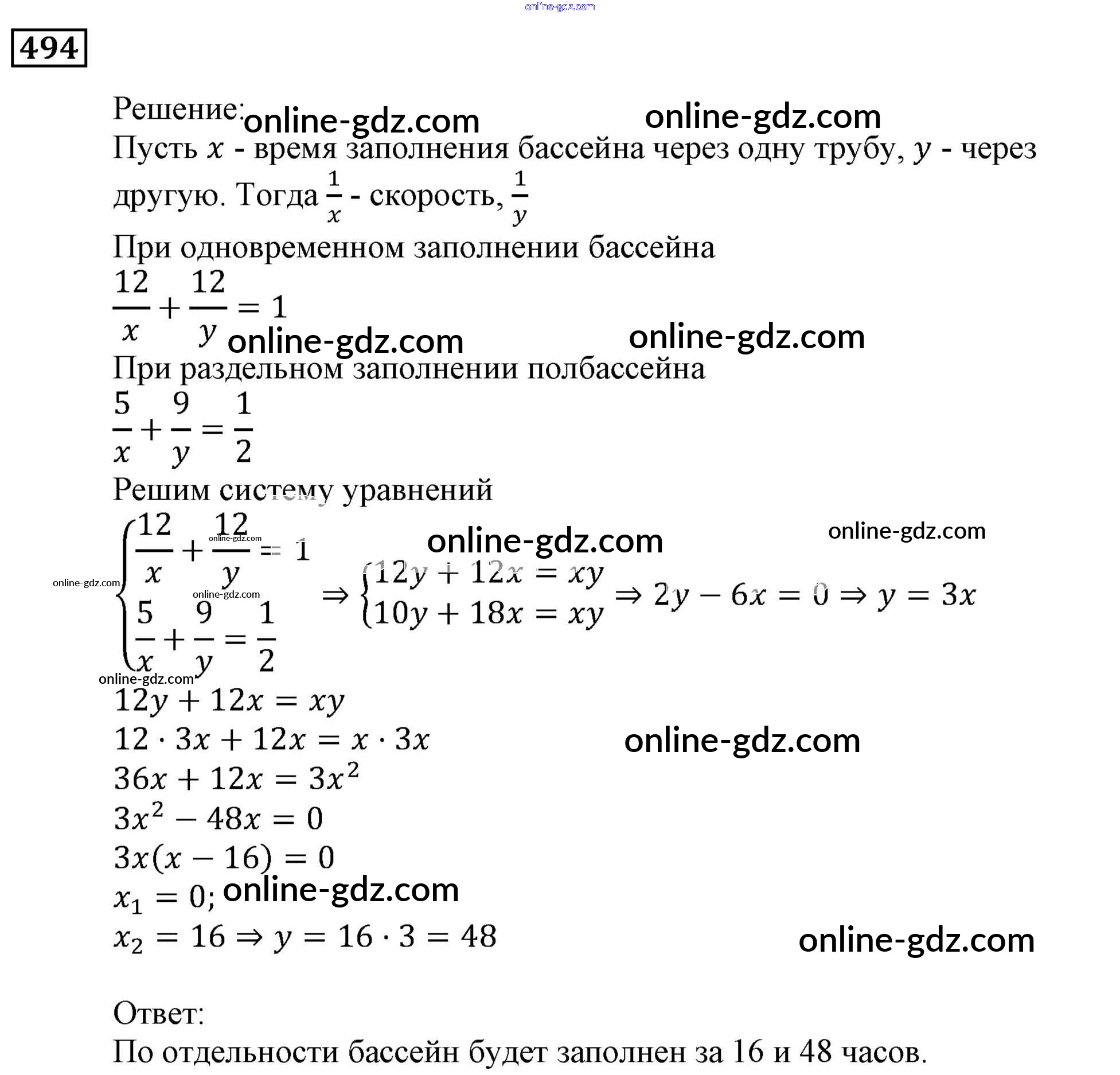 Готовые домашние задания по Алгебре за 9 класс Учебник Мерзляк, Полонский Алгоритм успеха 2016 - Упражнения 494