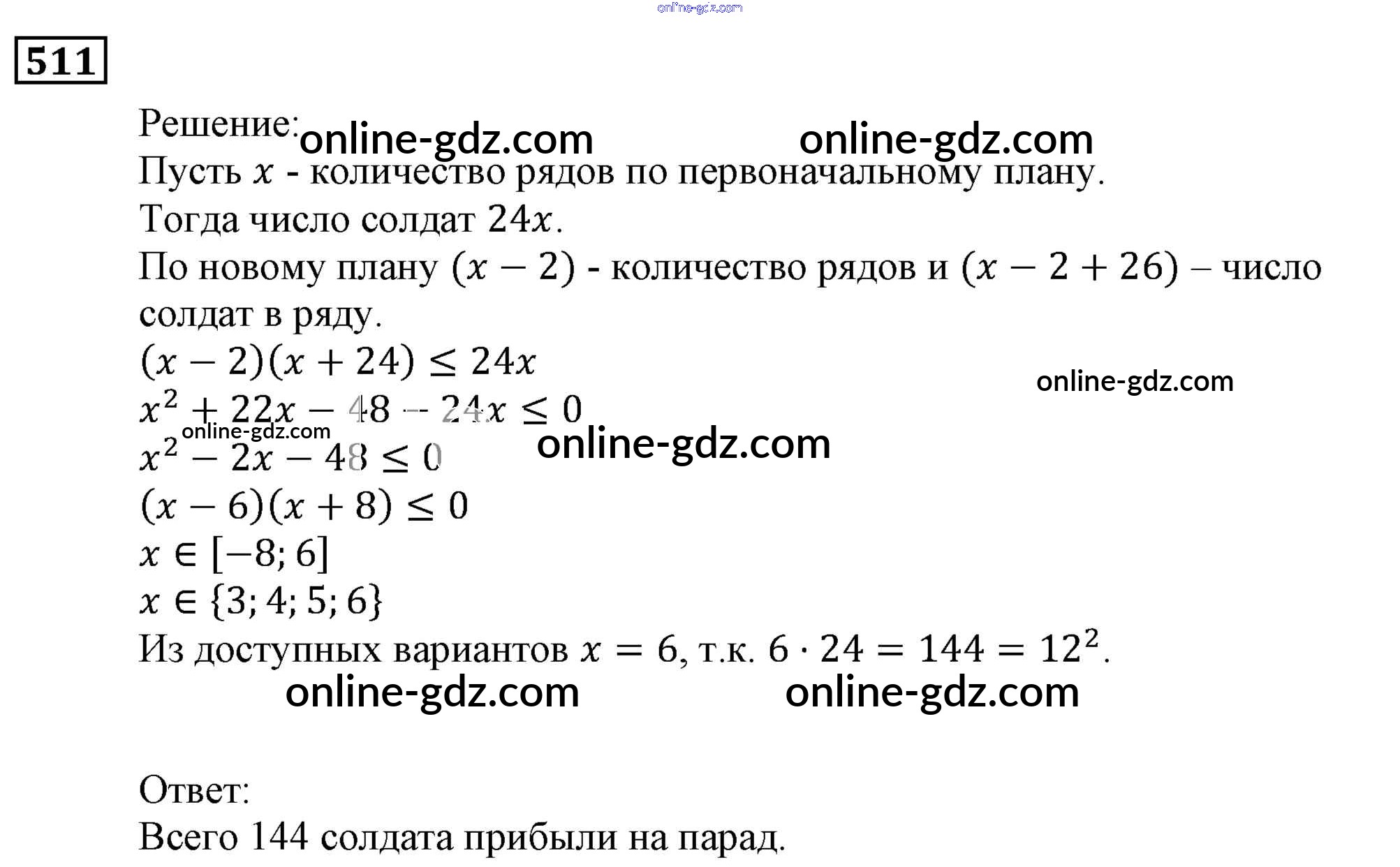 Готовые домашние задания по Алгебре за 9 класс Учебник Мерзляк, Полонский Алгоритм успеха 2016 - Упражнения 511