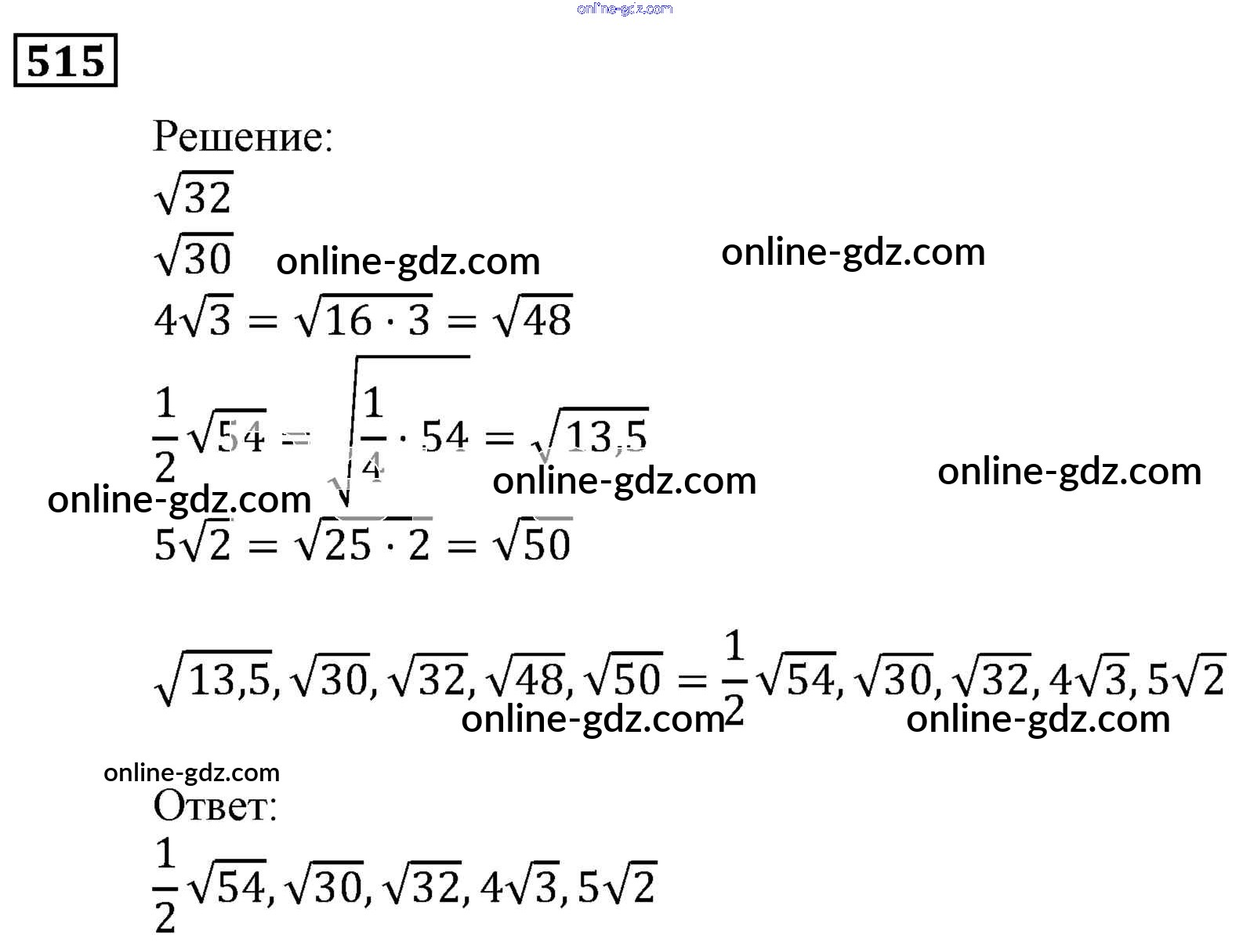 Готовые домашние задания по Алгебре за 9 класс Учебник Мерзляк, Полонский Алгоритм успеха 2016 - Упражнения 515
