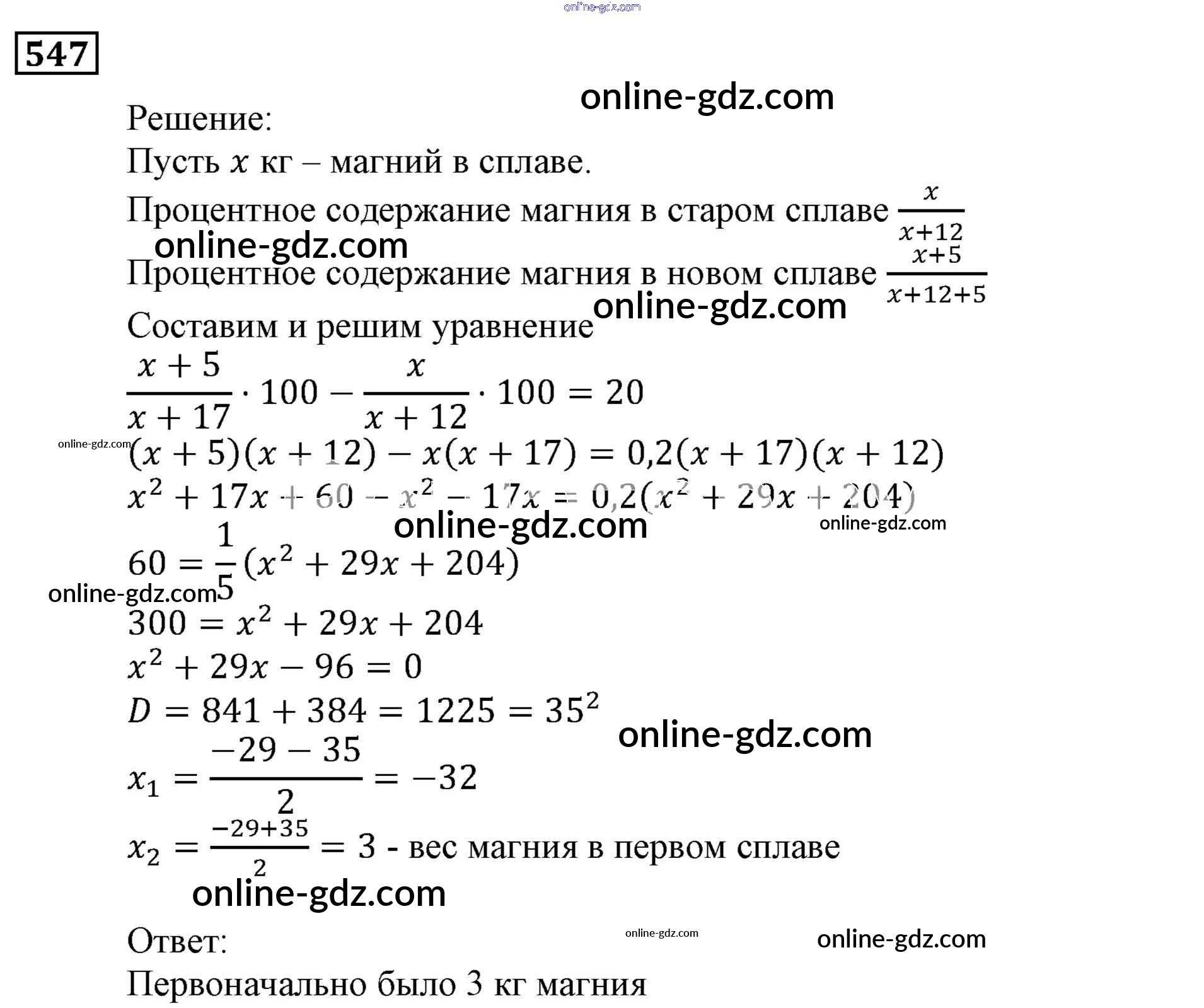 Готовые домашние задания по Алгебре за 9 класс Учебник Мерзляк, Полонский Алгоритм успеха 2016 - Упражнения 547