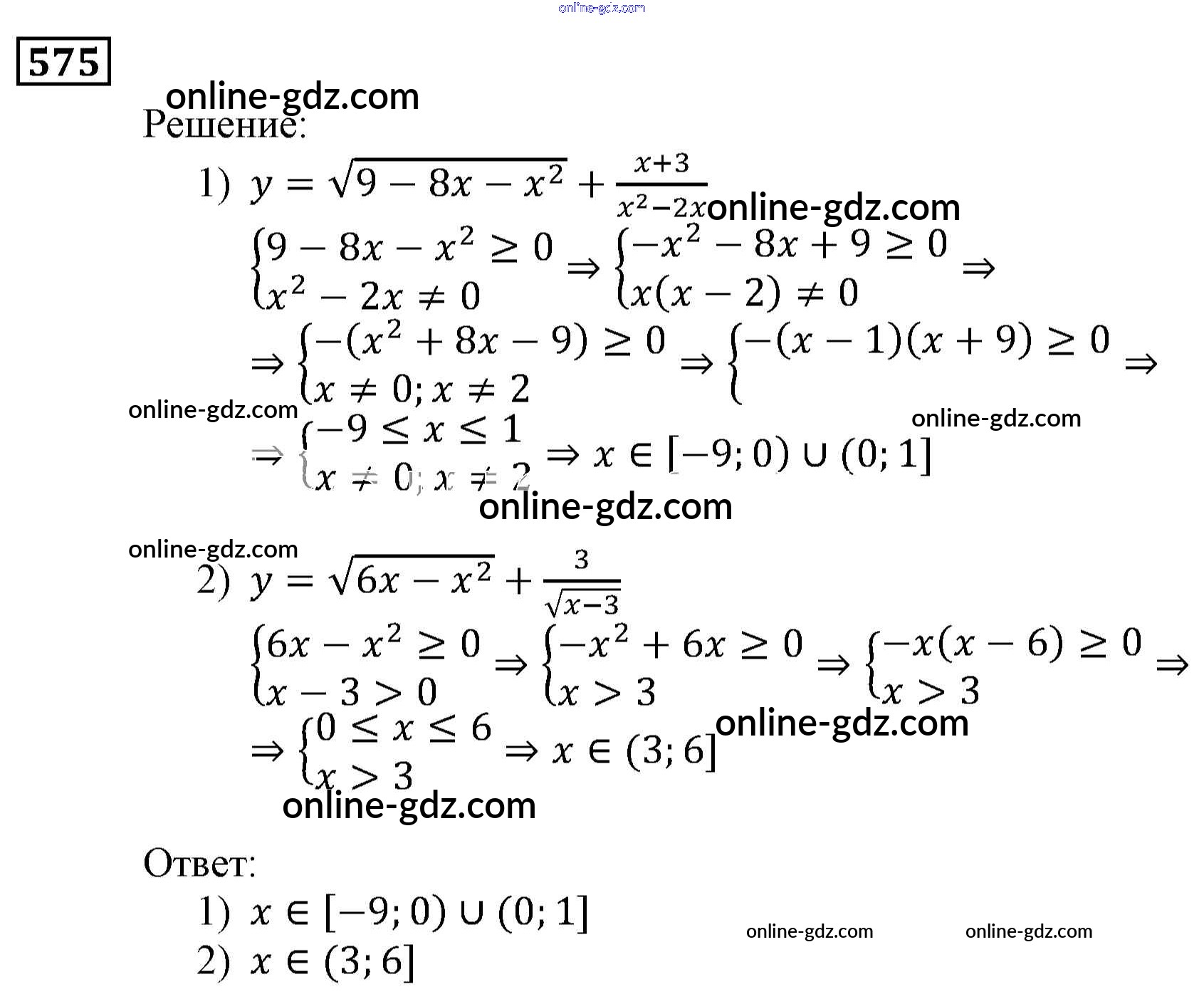 Готовые домашние задания по Алгебре за 9 класс Учебник Мерзляк, Полонский Алгоритм успеха 2016 - Упражнения 575