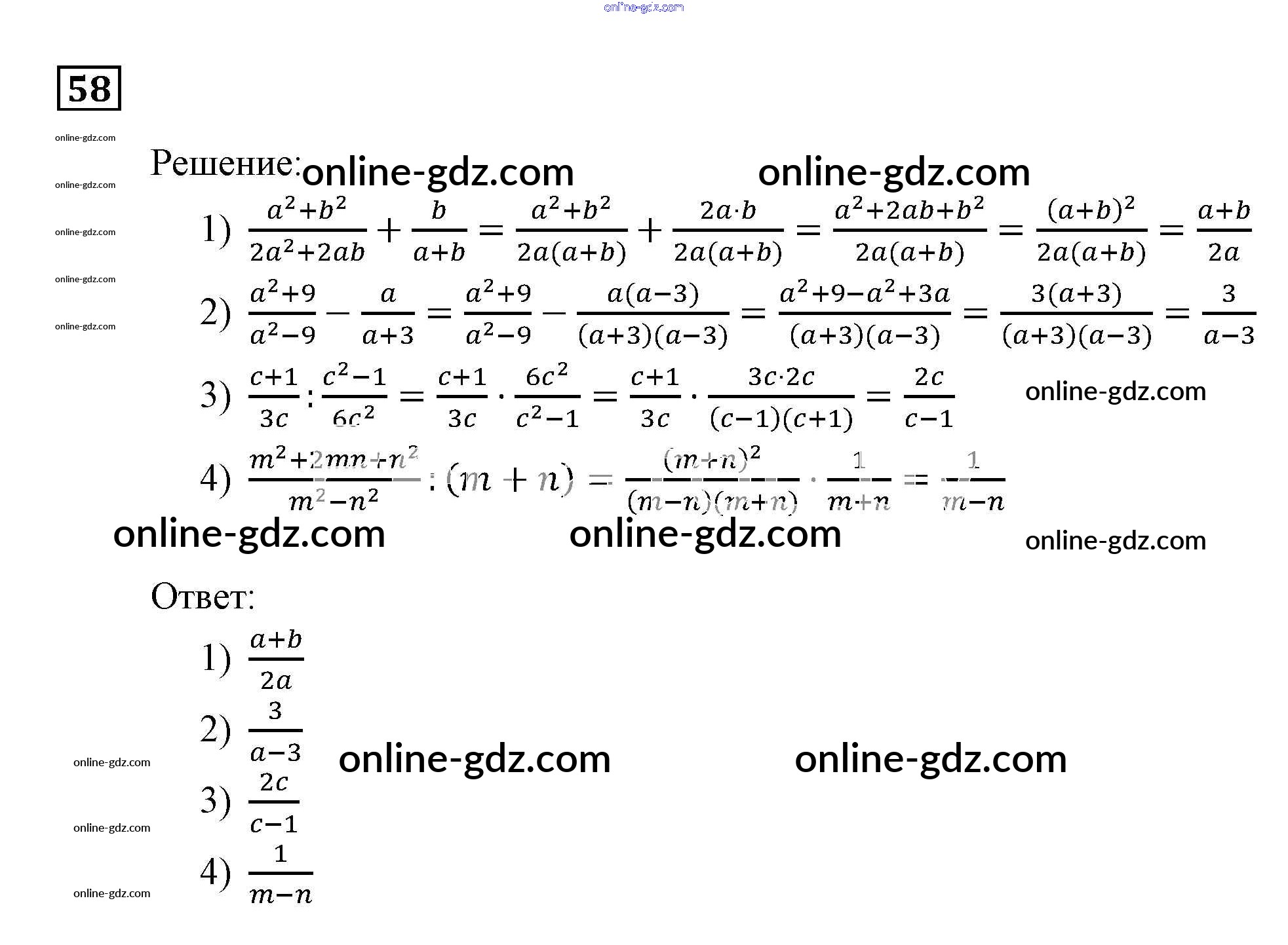 Готовые домашние задания по Алгебре за 9 класс Учебник Мерзляк, Полонский Алгоритм успеха 2016 - Упражнения 58