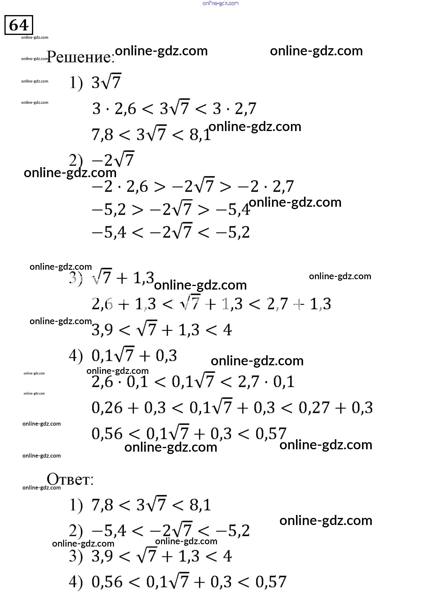 Готовые домашние задания по Алгебре за 9 класс Учебник Мерзляк, Полонский Алгоритм успеха 2016 - Упражнения 64