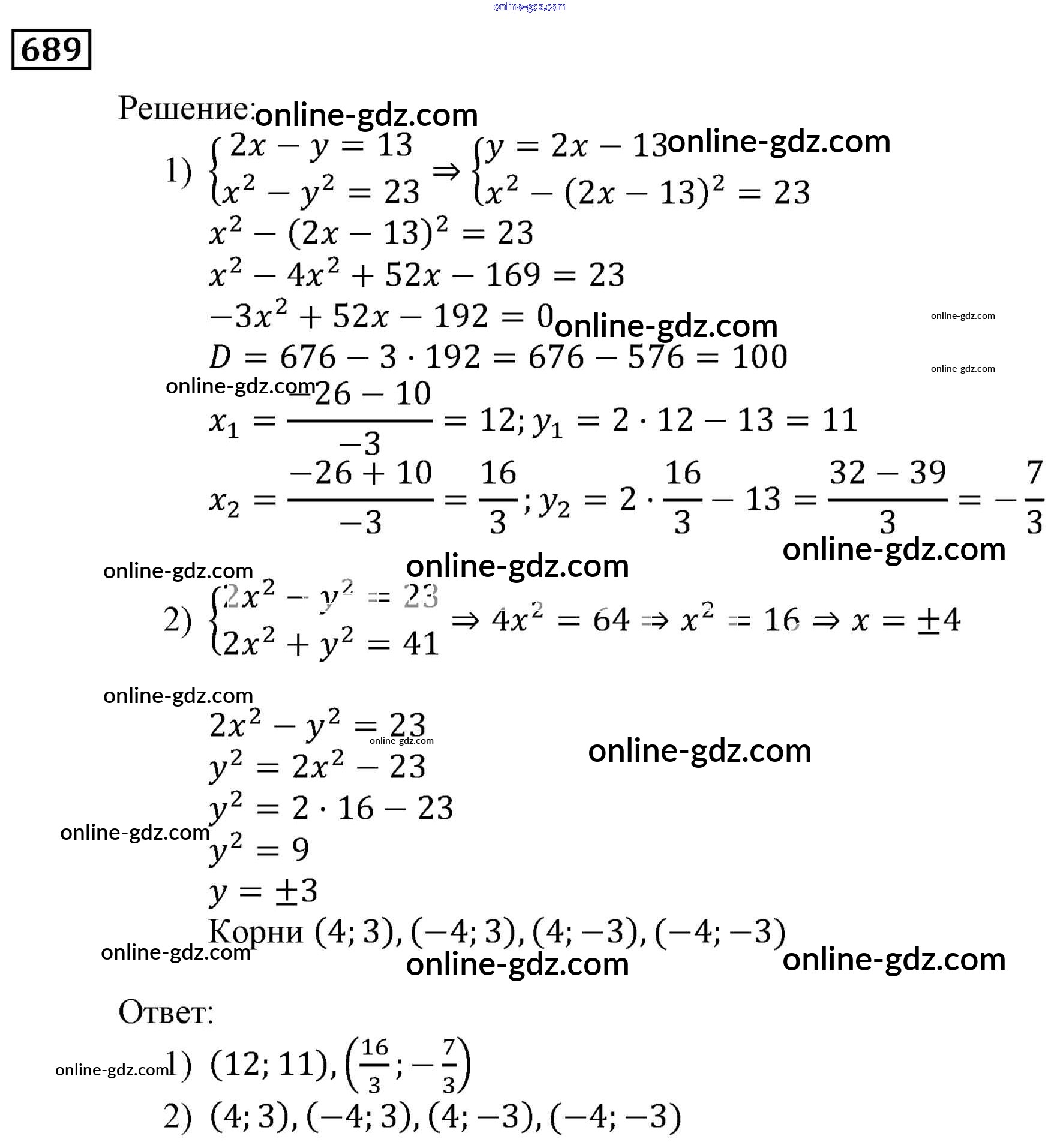 Готовые домашние задания по Алгебре за 9 класс Учебник Мерзляк, Полонский Алгоритм успеха 2016 - Упражнения 689