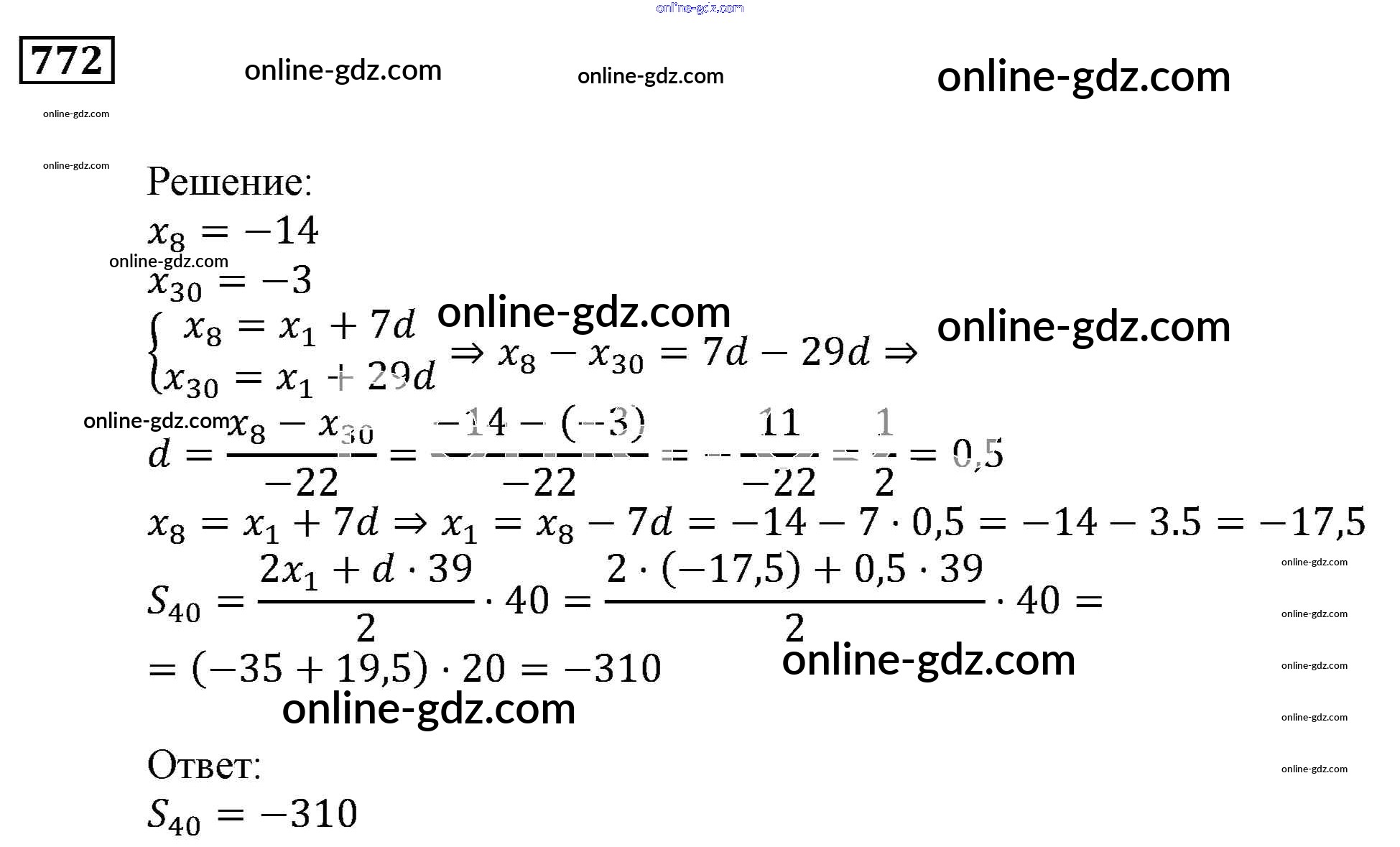 Готовые домашние задания по Алгебре за 9 класс Учебник Мерзляк, Полонский Алгоритм успеха 2016 - Упражнения 772